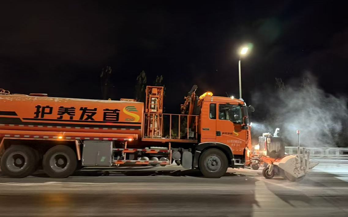 首发养护集团出动专业作业车辆清除路面积雪。北京市城管委供图