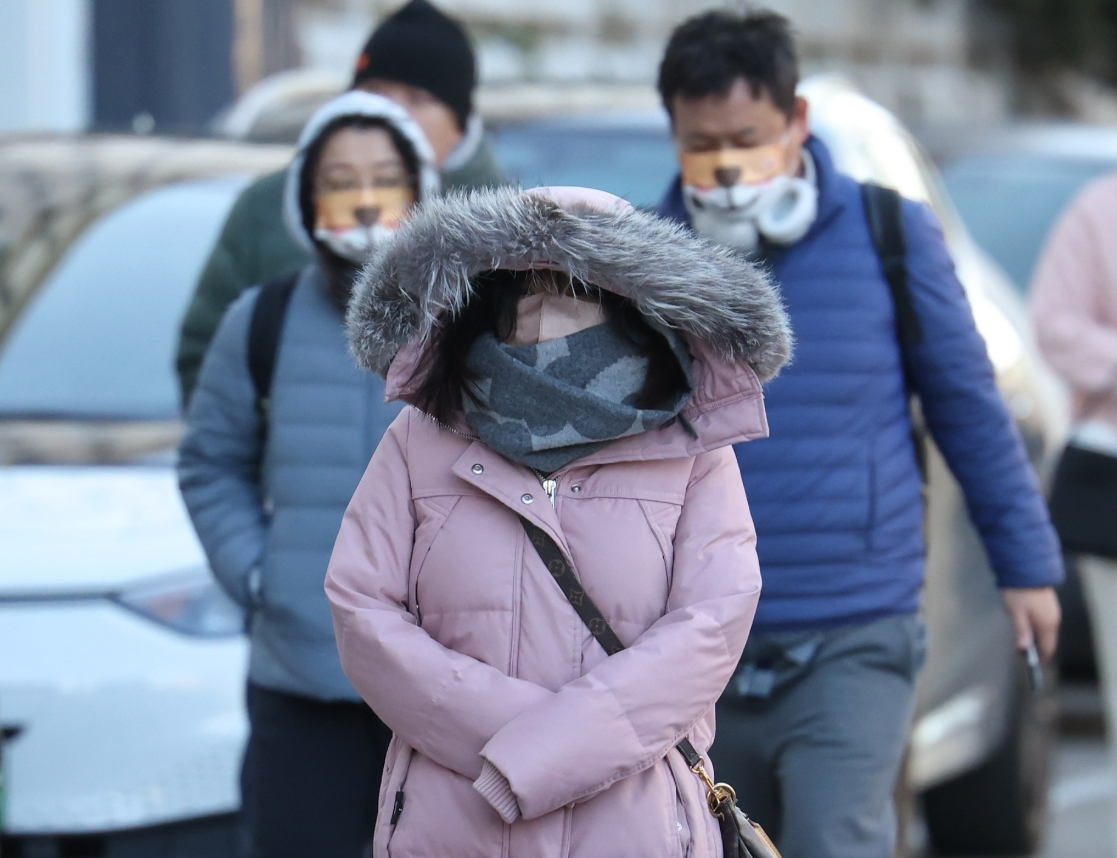 11月26日,北京市朝阳区樱花园东街,市民“全副武装”应对大风。新京报记者 王贵彬 摄