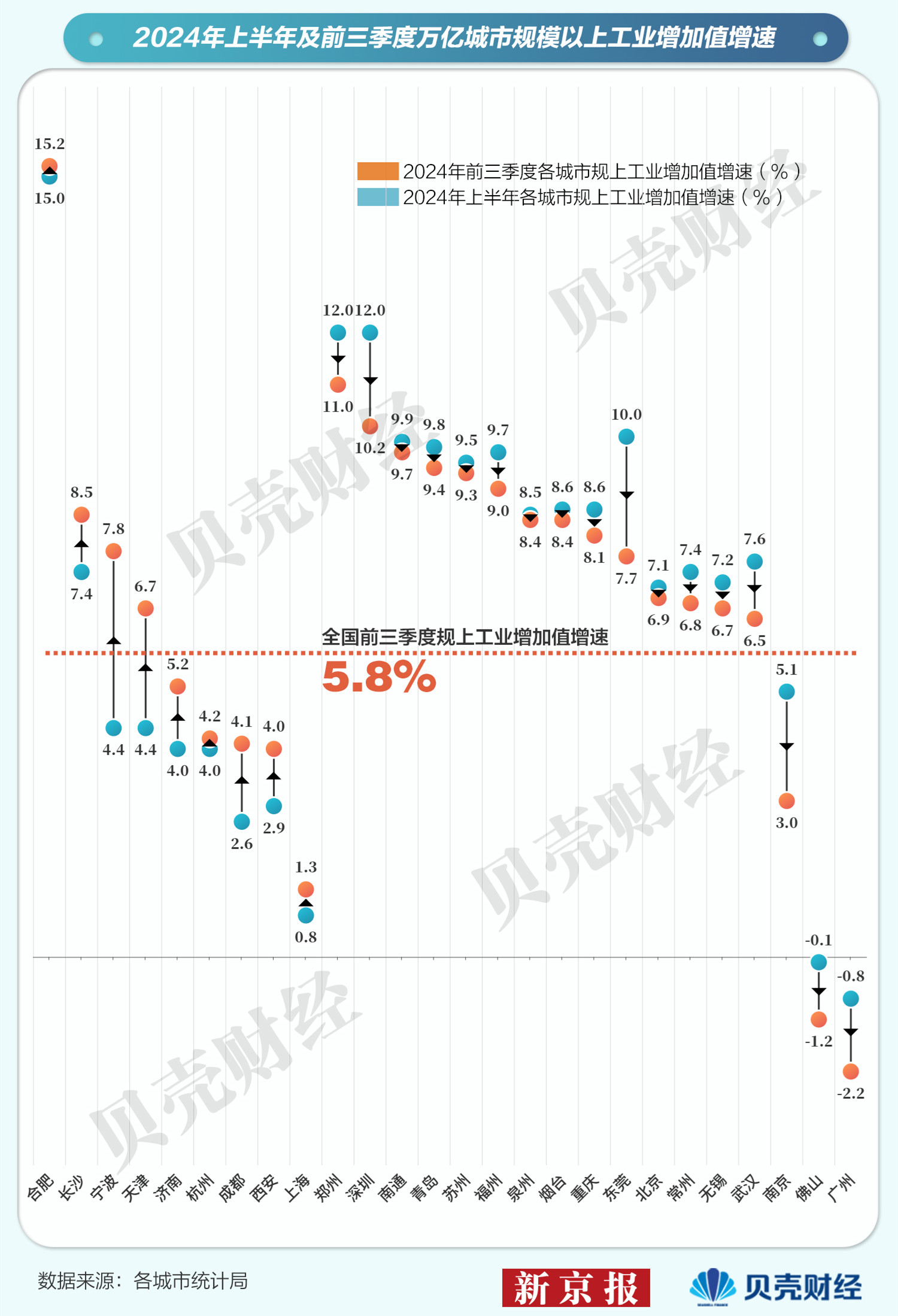 “有家就有佛山造”,广东佛山凭借这样的产业IP,2023年工业规模首破3万亿元,成功跻身中国工业“第四城”,但自2024年以来忽现“失速”。今年前三季度,佛山GDP增速仅为1.6%,规模以上工业增加值同比下降1.2%,是26个“万亿GDP”城市中,少数两个下降的城市之一。作为制造业大市,工业对于佛山经济的影响不言而喻。