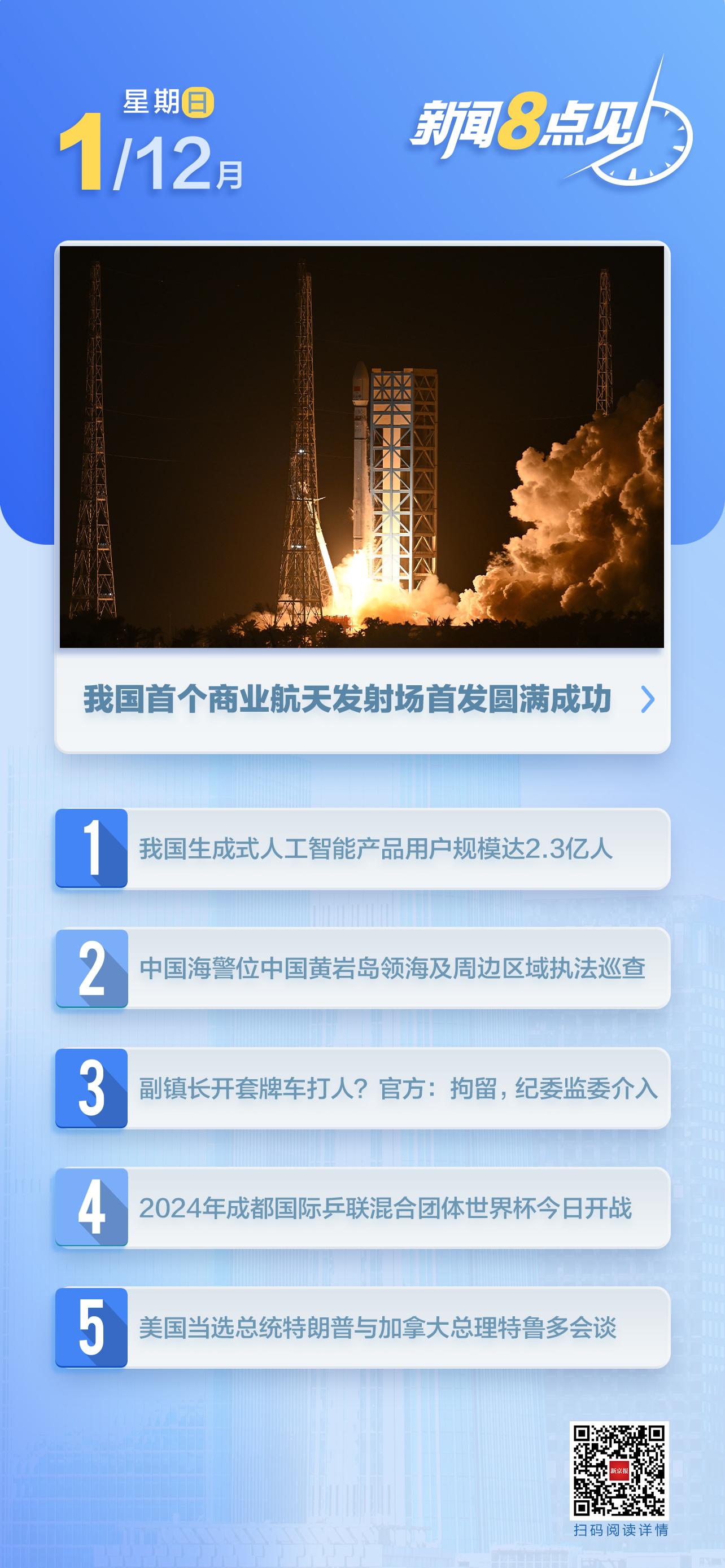11月30日,我国首个商业航天发射场海南商业航天发射场首次发射取得圆满成功。新型运载火箭长征十二号成功将卫星互联网技术试验卫星、技术试验卫星03星送入预定轨道。(央视新闻)阅读全文>>>
