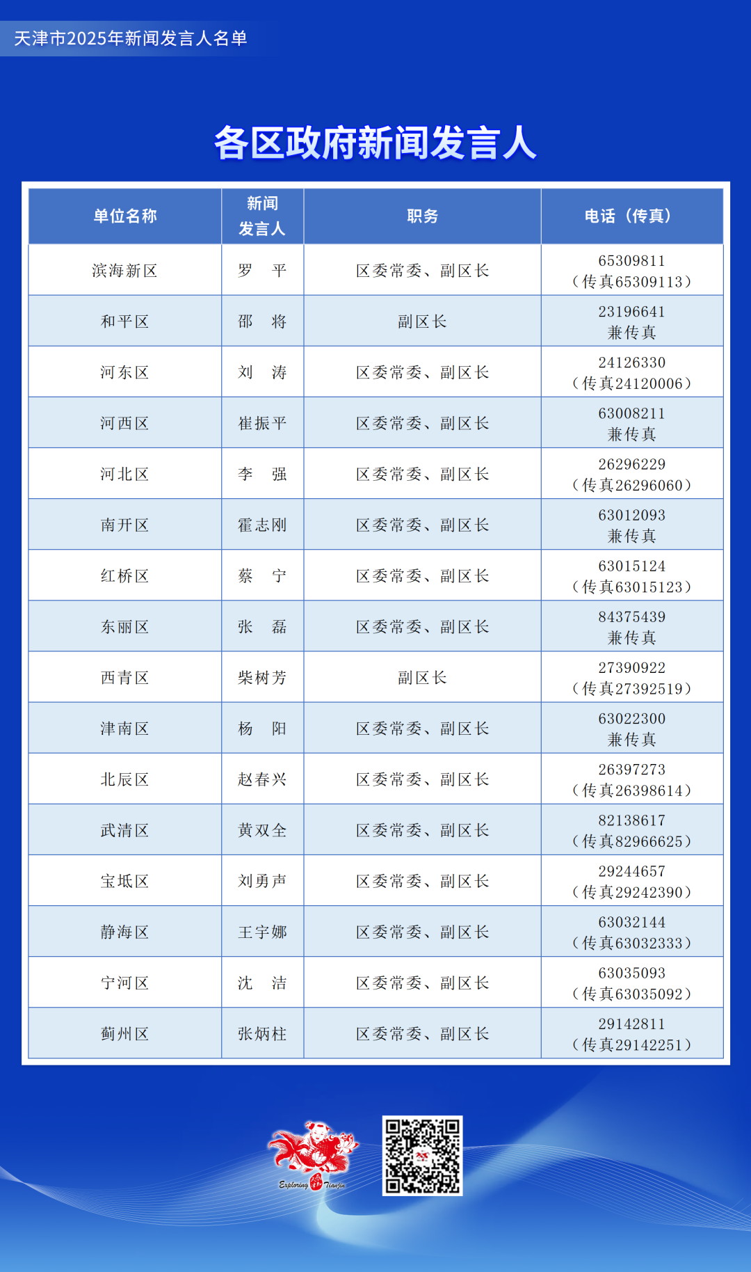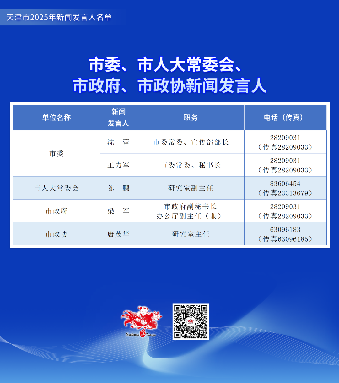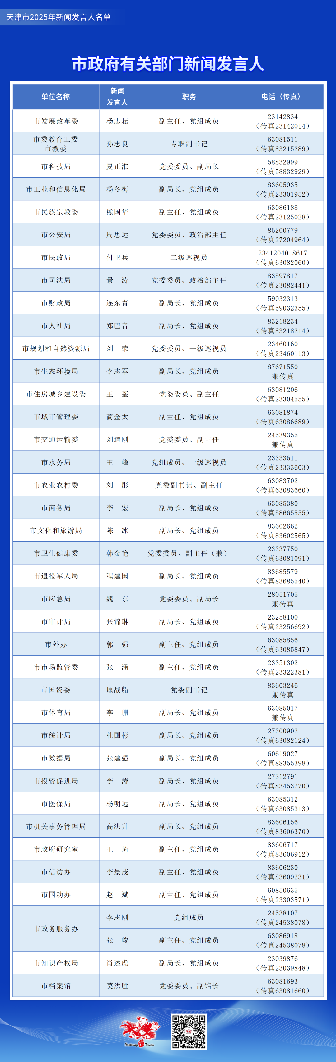 天津市2025年新闻发言人名单公布,涉党政机关和部分事业单位