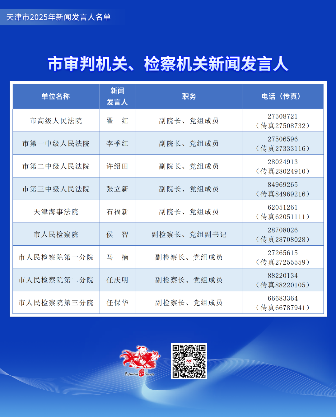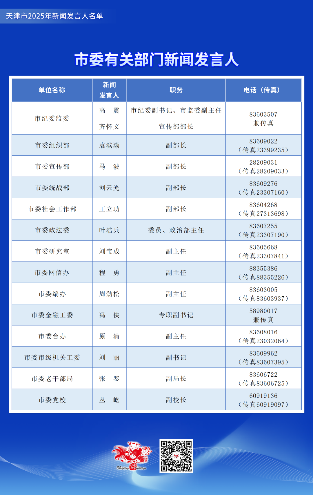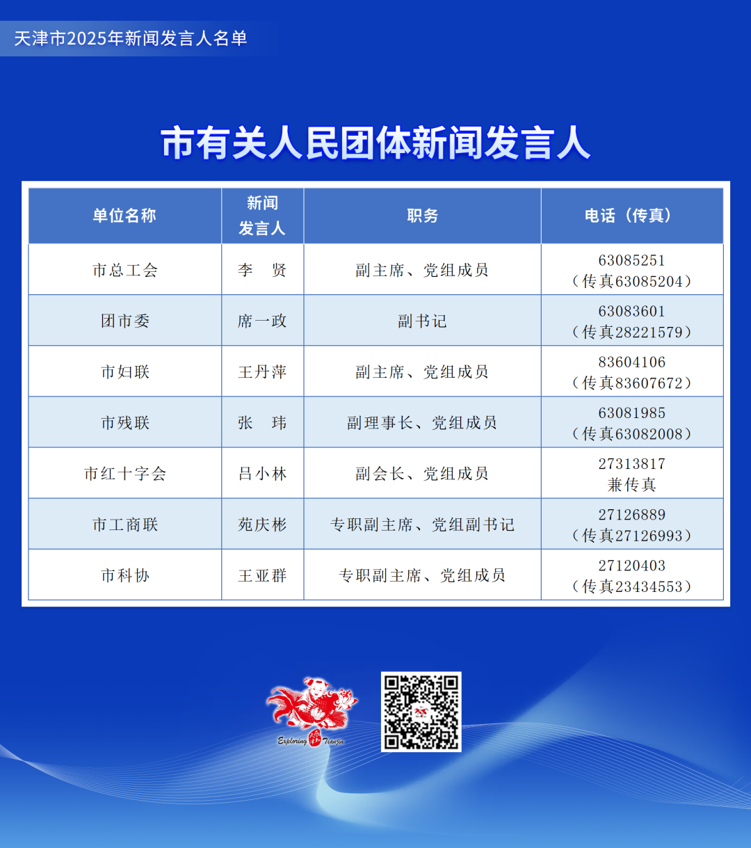 天津市2025年新闻发言人名单公布,涉党政机关和部分事业单位