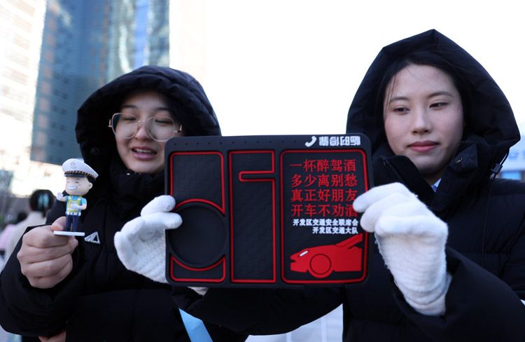市民展示全国交通安全日文创纪念品。2024年,经开区深入开展“文明驾车 礼让行人”专项行动,倡导驾车“礼让斑马线”“礼让公交车”,启动“我认领 我服务”文明交通志愿服务项目,组织志愿者集中在区内多个重点路口开展全年常态化文明交通引导活动。