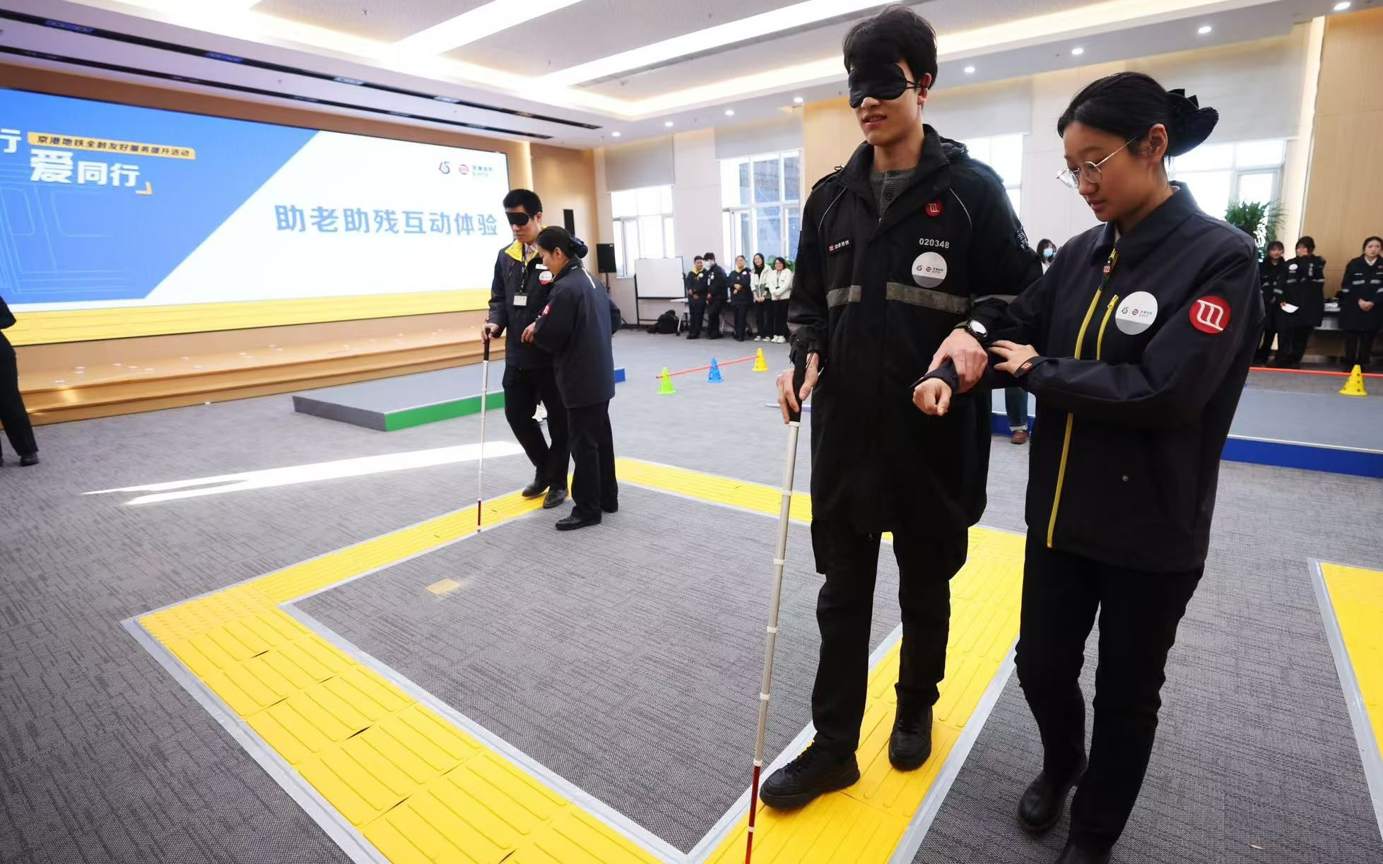 培训中,残疾乘客代表与京港地铁员工代表开展了双向分享与交流。残疾乘客讲述了他们在日常出行中遇到的困难及最担心的问题,地铁工作人员代表则提出了过往服务中的困惑和服务不同类型残障乘客时的顾虑。为了让地铁员工更加深入地了解不同人群的出行需求,本次培训还结合老年人、盲人和轮椅乘客的实际情况,特别设计了沉浸式体验环节。