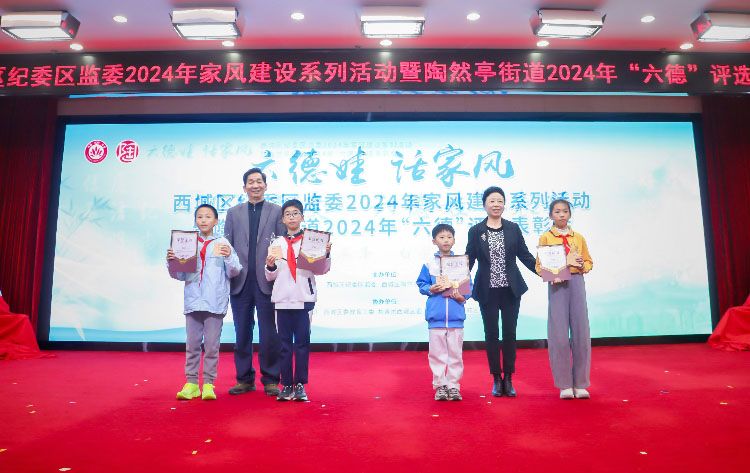 12月7日,“六德娃 话家风”西城区纪委监委2024年家风建设系列活动暨陶然亭街道2024年“六德”评选表彰会在北京职工服务中心举行。自9月该活动启动后,地区青少年踊跃参与并投稿“家风微视频”,其中10位当选 “最佳宣讲员”。活动现场举办了宣讲比赛与颁奖仪式,嘉宾为获奖宣讲员及获选代表颁发证书。