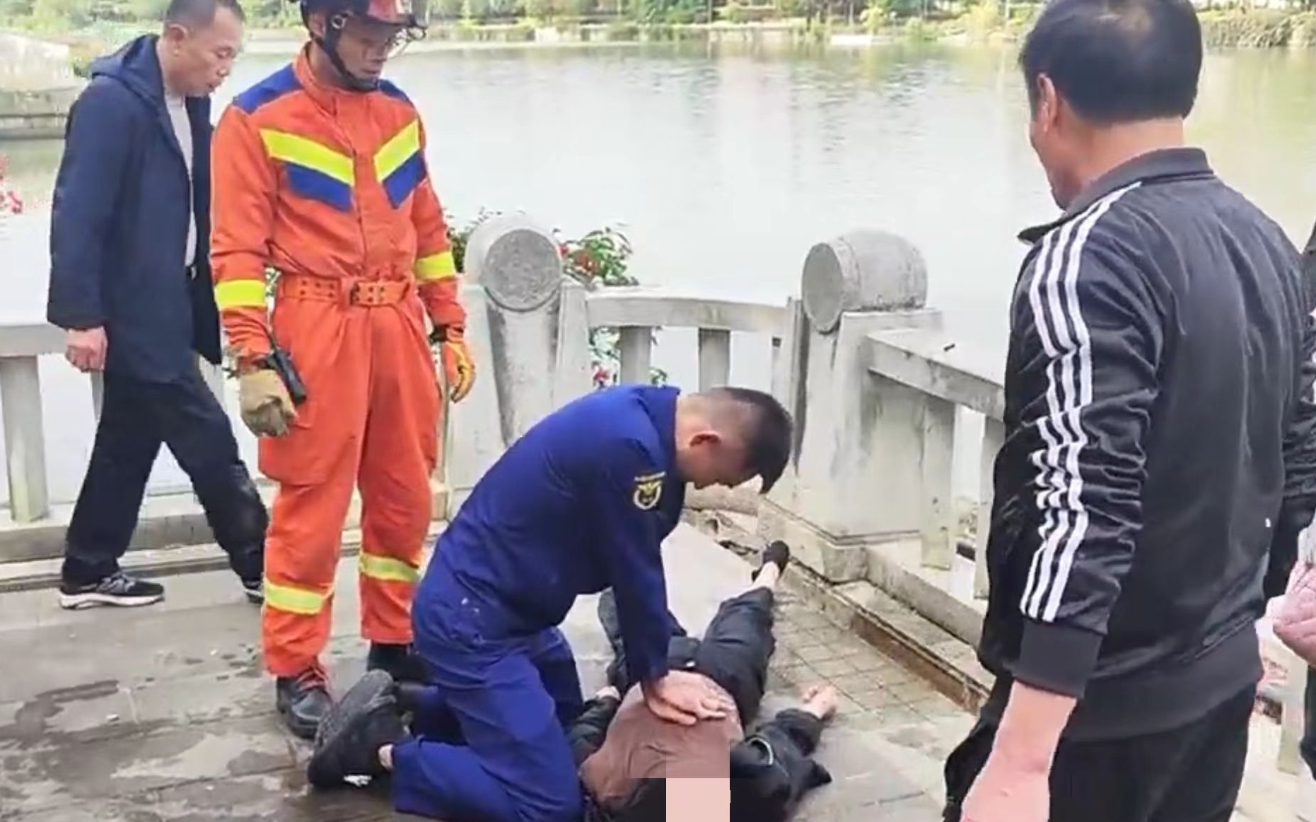 女子不慎落水昏迷,消防员跪地心肺复苏“抢”回一命