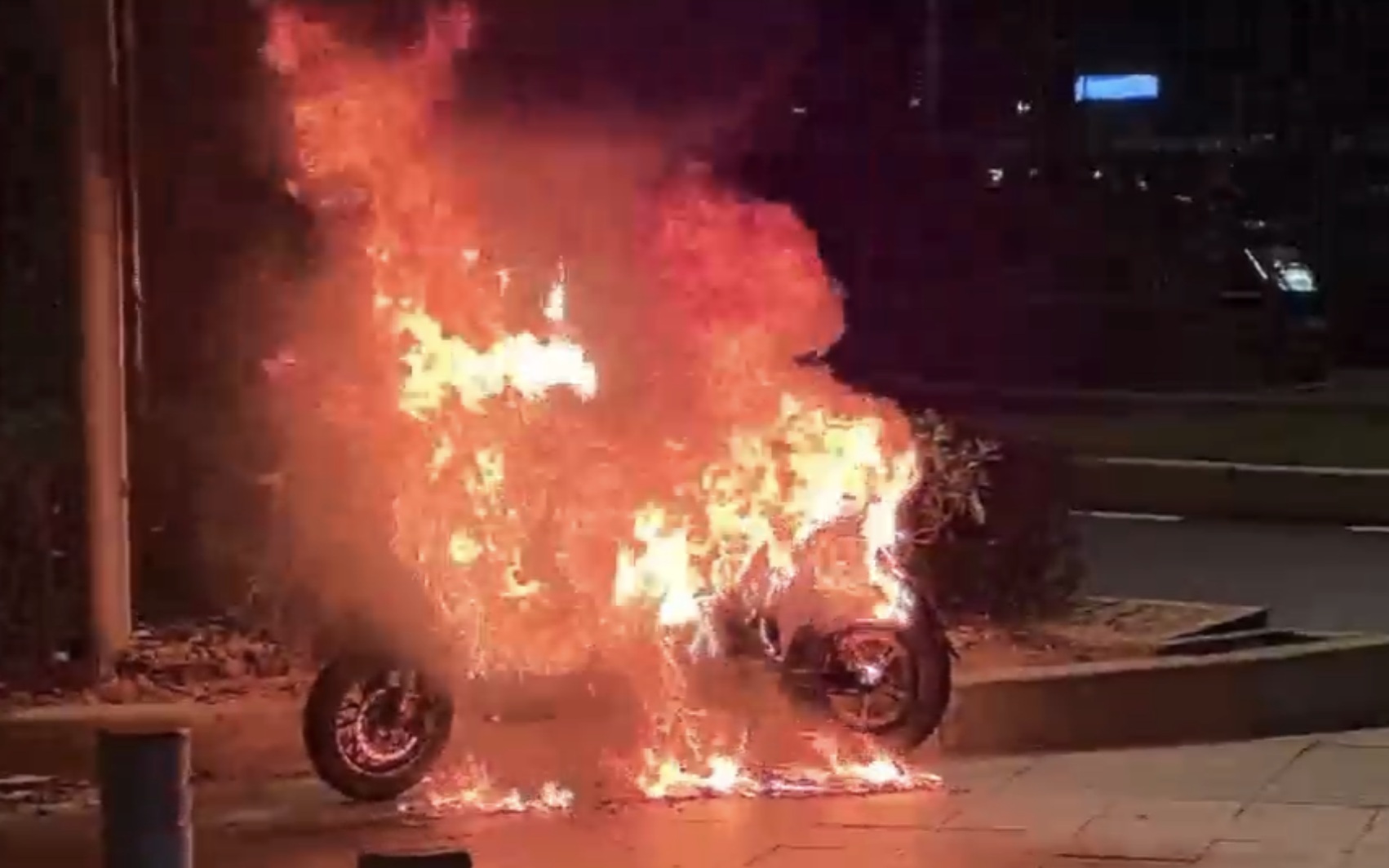 据了解,消防救援人员抵达现场时,电动自行车正处于剧烈燃烧状态,且周边人流密集,行人及车辆持续经过。为防止电动自行车发生二次爆燃事故,对过往行人及车辆构成危险,消防救援人员一组负责现场秩序维护,引导过往车辆保持安全间距;另一组则立即展开灭火作业,利用一支水枪对电动自行车火源实施有效压制。