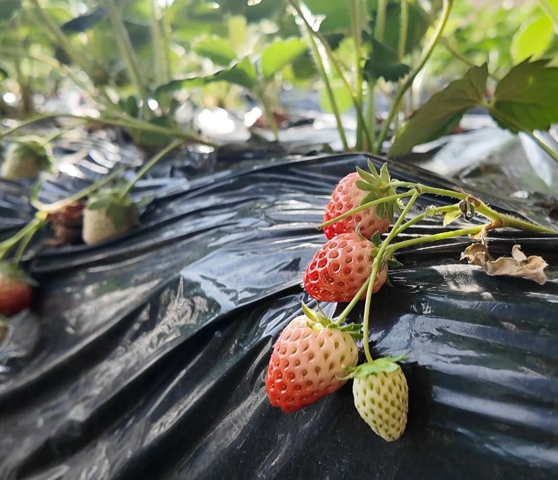头茬草莓不仅色泽鲜艳,香气浓郁、口感也更加鲜美多汁。据了解,溪翁庄镇北白岩村共种植草莓10余亩,此次上市的头茬草莓为红颜,白雪公主两个品种,红颜草莓果实饱满、甜度高;白雪公主草莓则以其细腻的口感与淡雅的果香令人陶醉。园区内还推出线上预订与线下采摘相结合的销售模式,不少市民前来体验采摘乐趣,感受田园风光的同时,品尝新鲜草莓的美味。