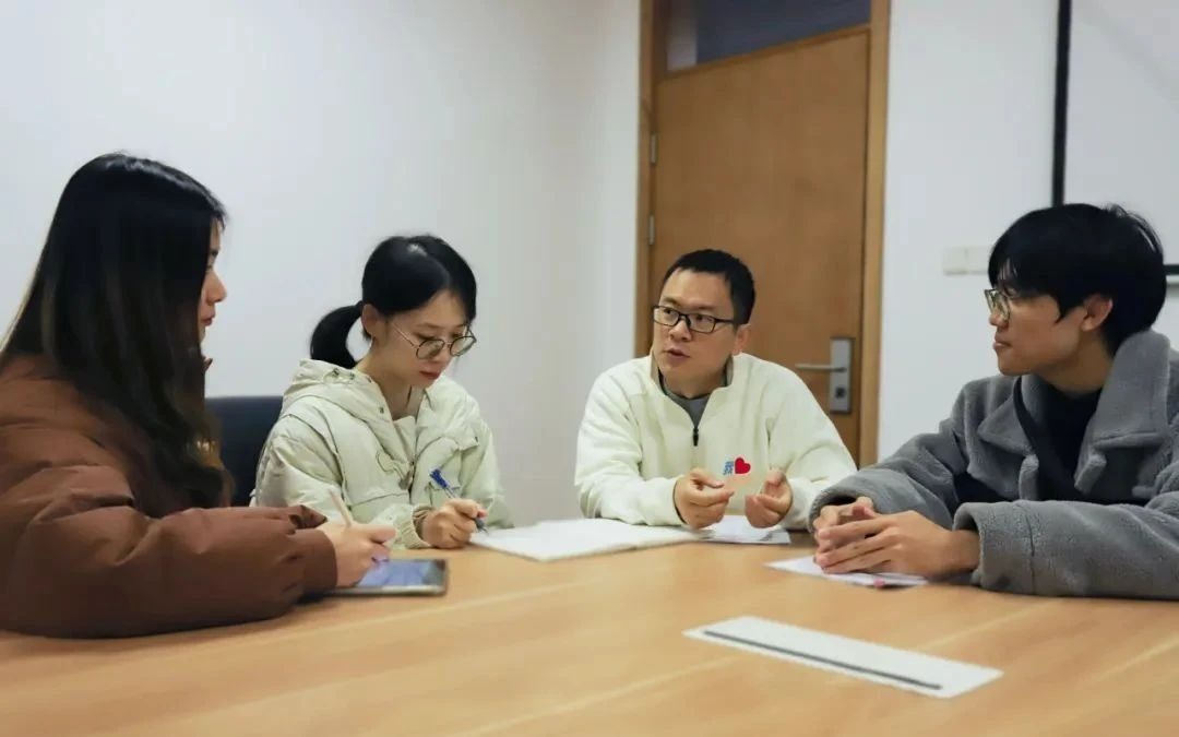 ▲袁哲在与学生讨论问题。图/浙江大学官方微信