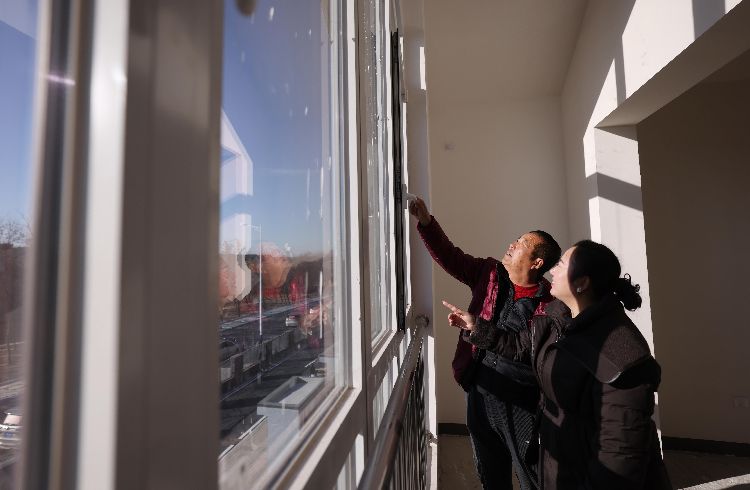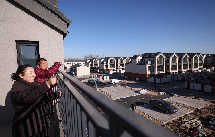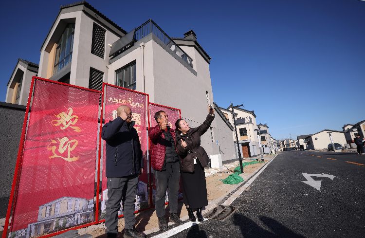 12月15日,大兴区安定镇前野厂村村民在新居打卡点前留影。从15日起,大兴区安定垃圾填埋场周边综合治理异地迁建项目东片区开始交付,未来一周,这里将陆续迎来1125户村民乔迁新居。