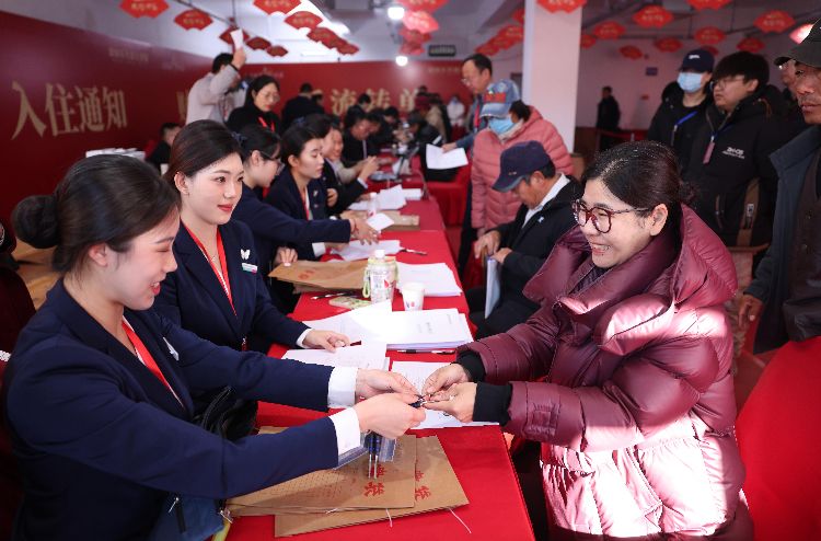 村民在办理收房入住手续。近年来,大兴区安定镇通过宅基地异地置换安置方式,推进安定镇垃圾填埋场周边7个村庄的异地迁建,居民的居住环境得到了改善。