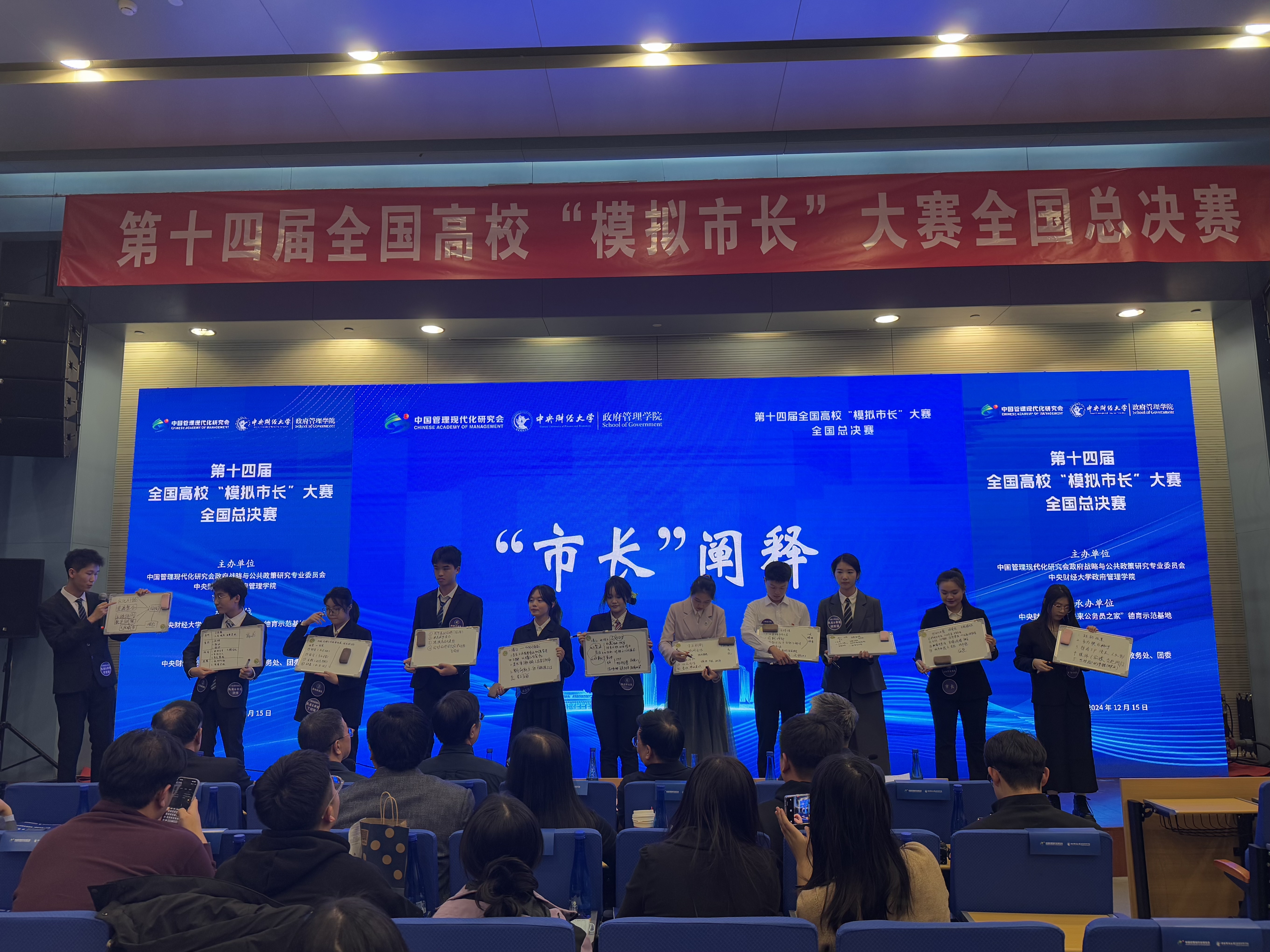 城中村升级改造如何高质量进行?零工劳务市场转型发展的方向在哪?托育服务发展如何适配供需关系?如何结合网络直播平台进行城市夜经济治理?如何帮助女性非正式照料者纾困发展?……12月15日,第十四届全国高校“模拟市长”大赛全国总决赛在中央财经大学举办。11支大学生队伍聚焦当下社会、政治与经济焦点议题,以“市长”的角度和视野提出解决之法。