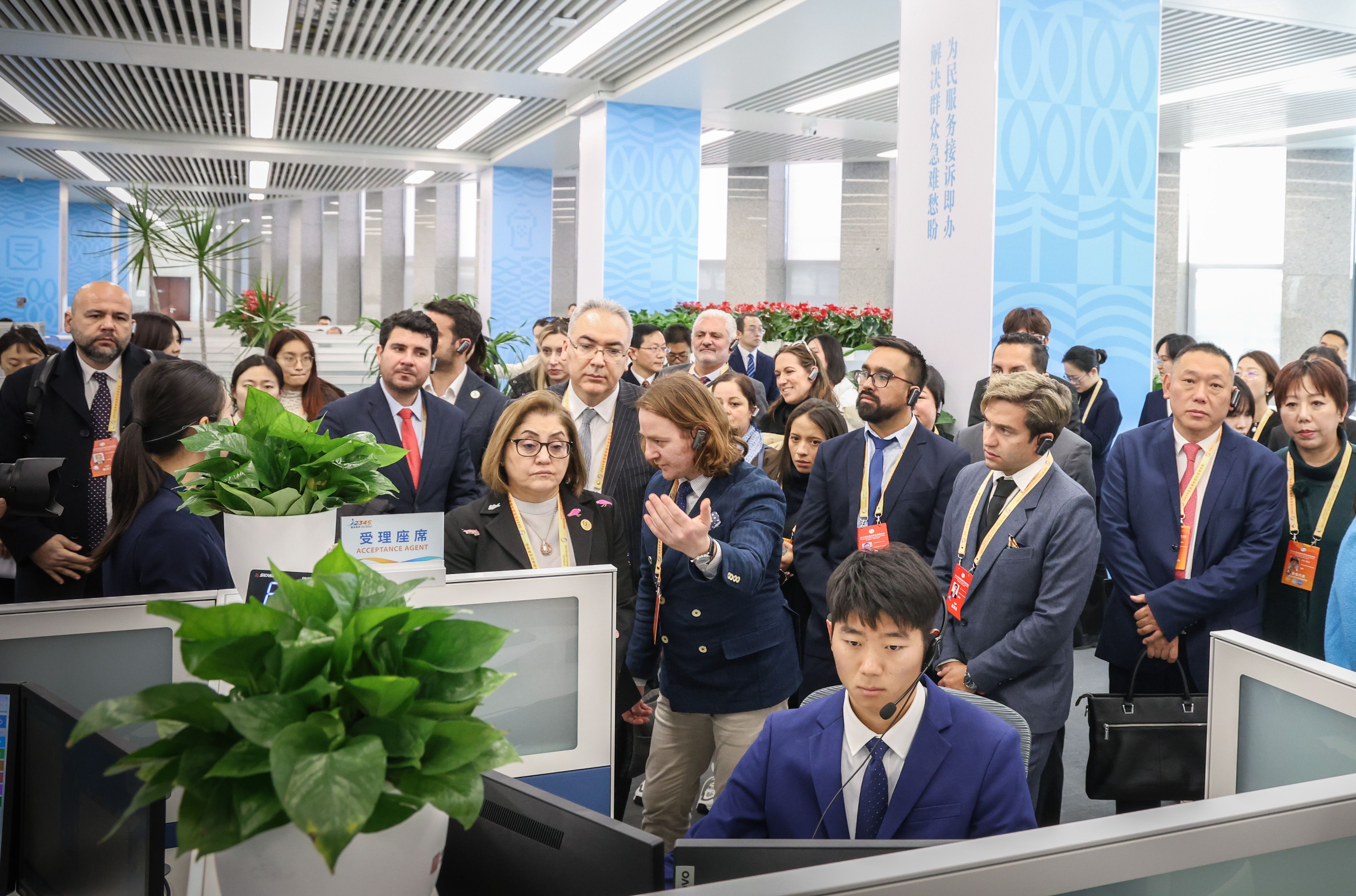 国际嘉宾走进北京12345市民热线服务中心。新京报记者 王远征 摄