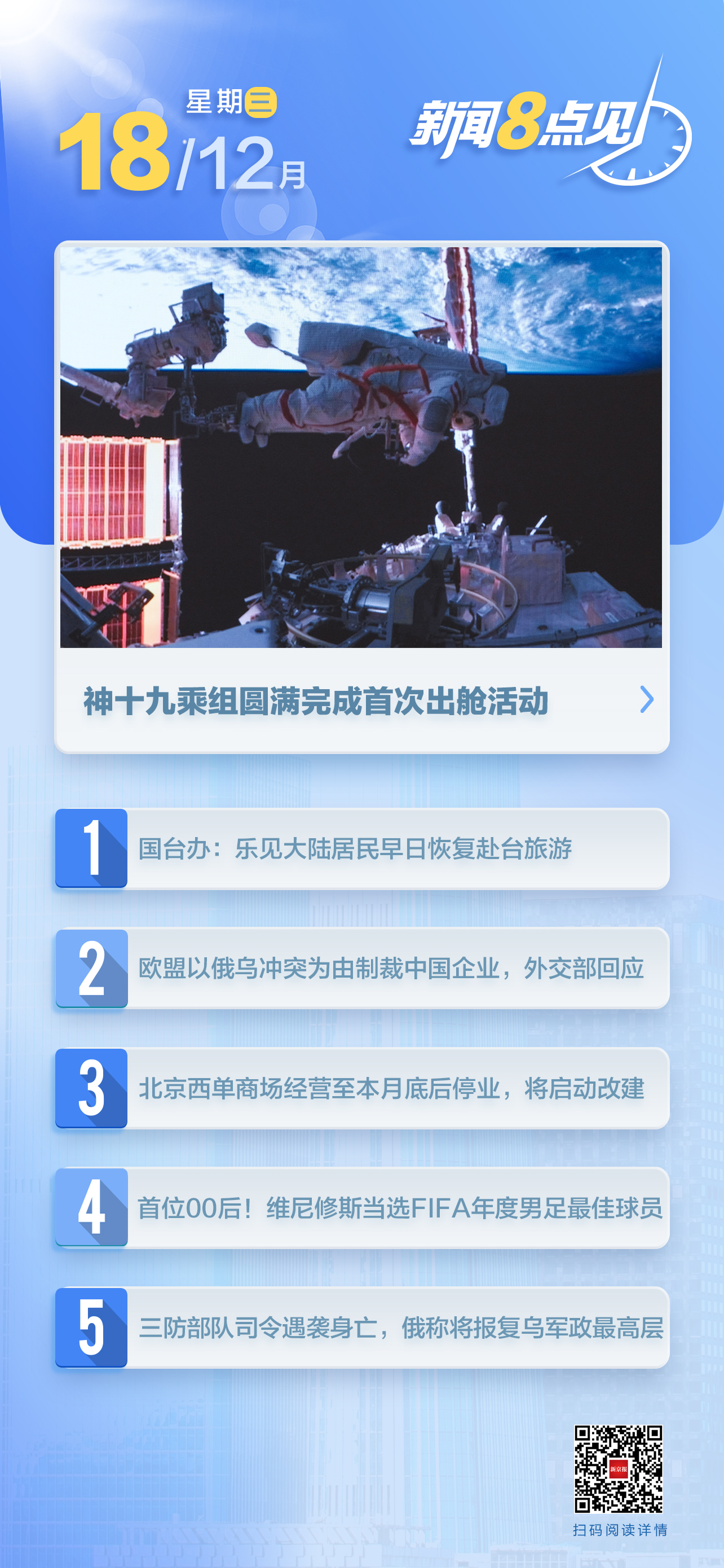 神舟十九号航天员乘组圆满完成第一次出舱活动