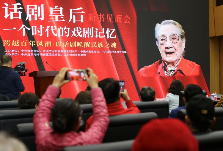 12月18日,《话剧皇后:一个时代的戏剧记忆》新书见面会在中国国家图书馆举行,此次活动由中央戏剧学院、中国艺术研究院话剧研究所、中国戏剧出版社、中共连云港市委宣传部主办。图为戏剧爱好者翻阅《话剧皇后:一个时代的戏剧记忆》。