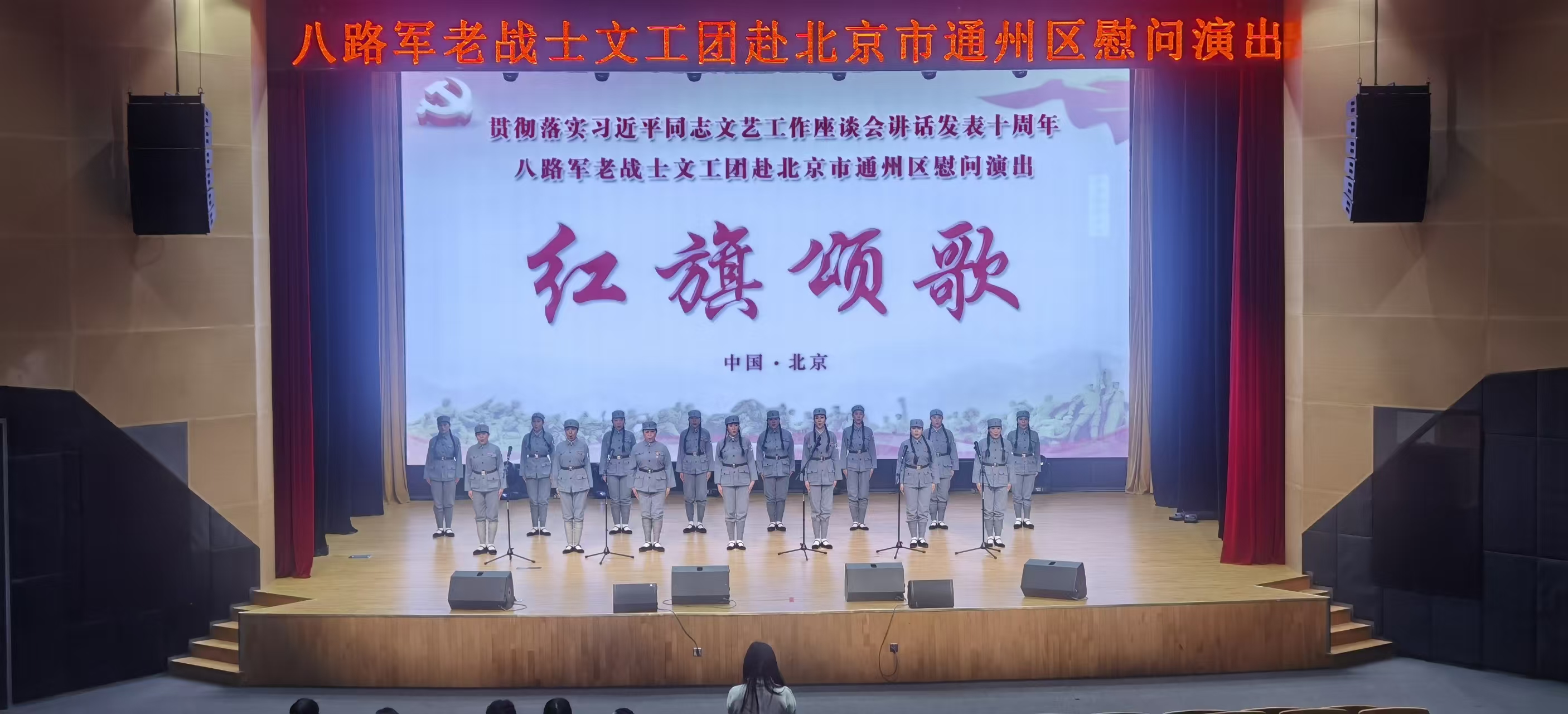 新京报讯(记者刘臻)12月17日,八路军老战士文工团赴北京市通州区潞城镇综合文化中心,举行了两场“红旗颂歌”慰问演出,受到当地观众的欢迎与好评。