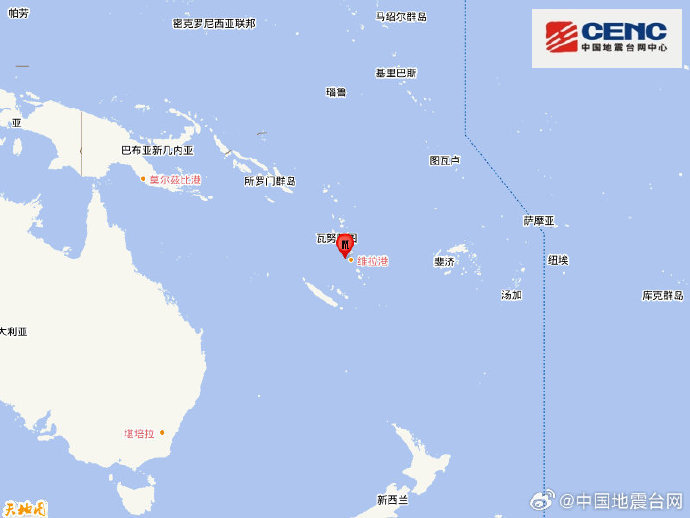 瓦努阿图群岛发生6.1级地震,震源深度50千米