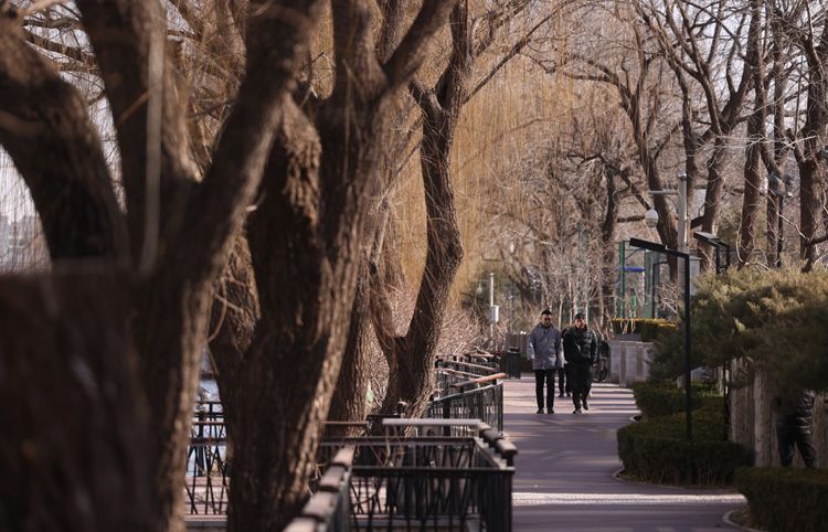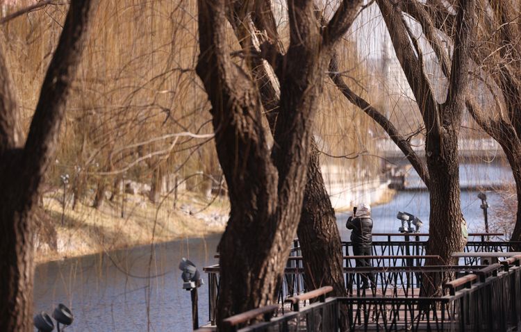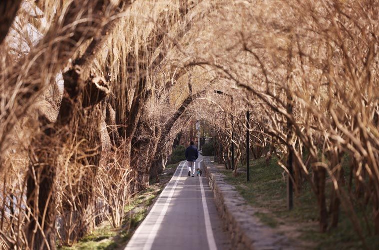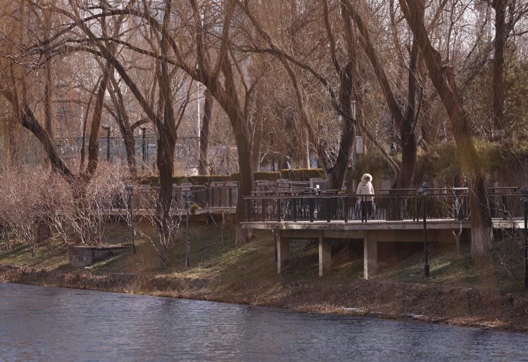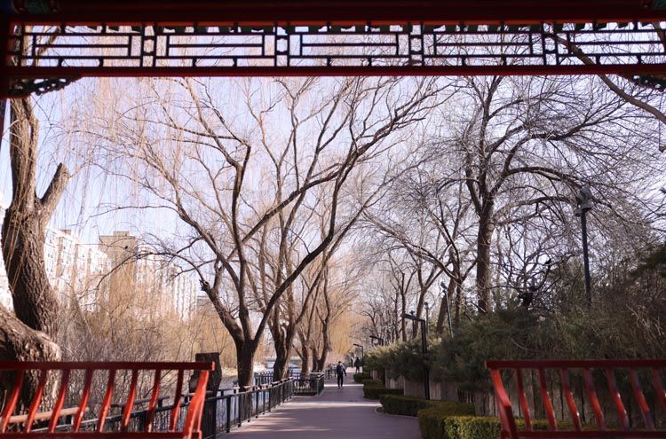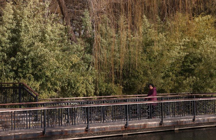 12月25日,一名市民在北护城河滨水步道散步。近日北护城河滨水步道连通工程完工,这意味着环二环滨水步道和城市绿道80公里畅通无阻,即日起市民可环二环“一走到底”。