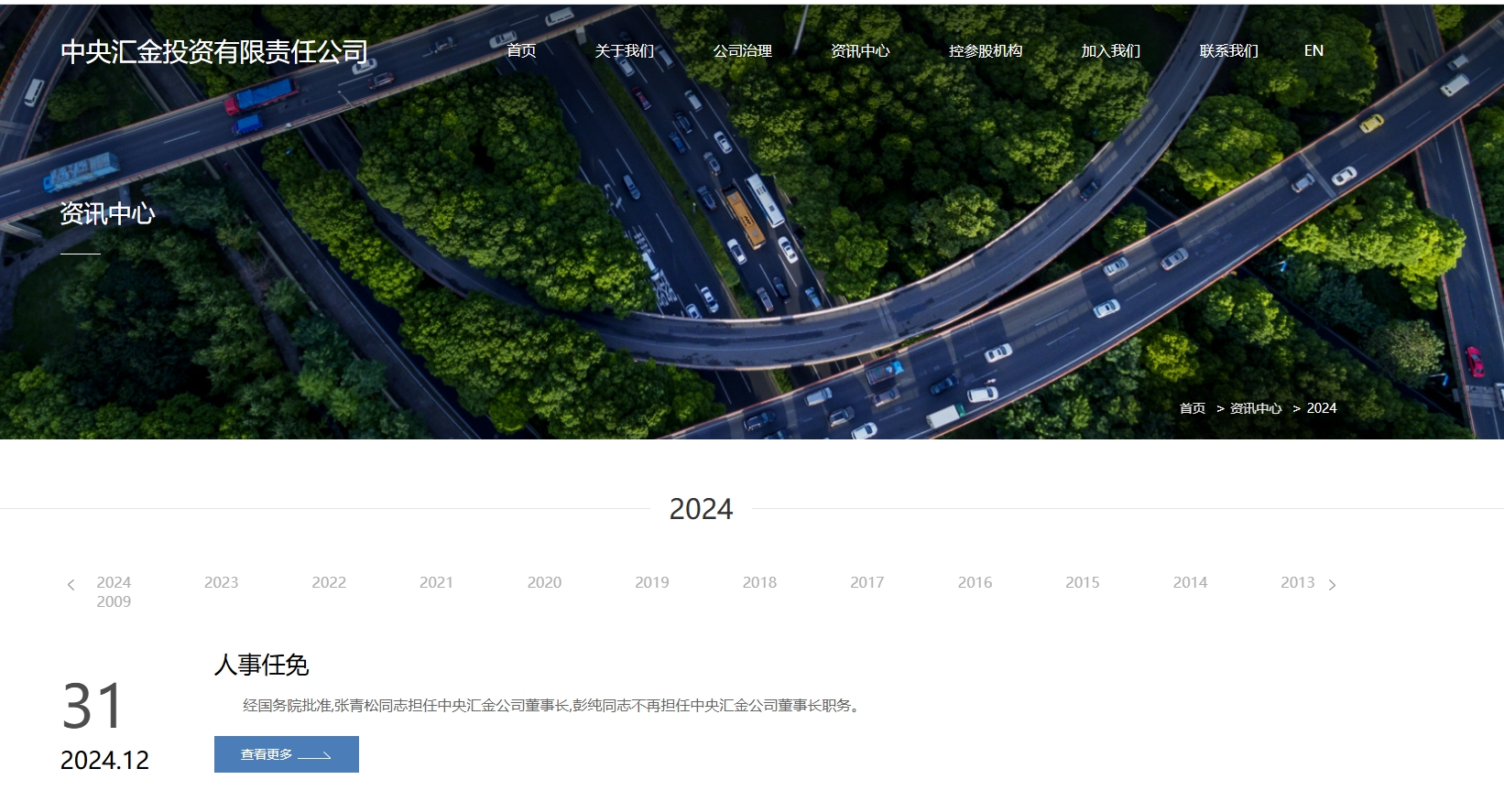 新京报讯 据中央汇金投资有限责任公司官网消息,经国务院批准,张青松同志担任中央汇金公司董事长,彭纯同志不再担任中央汇金公司董事长职务。