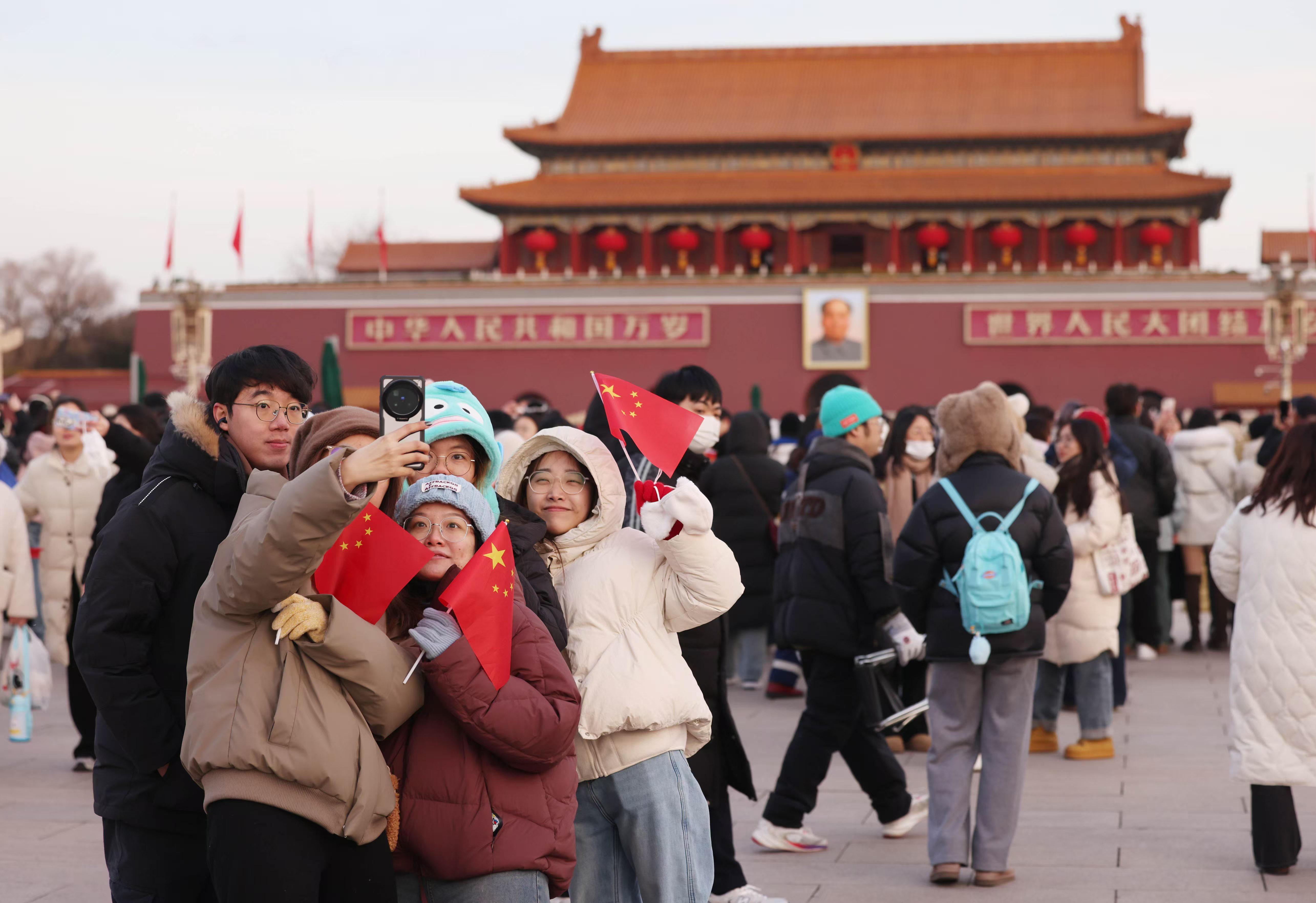 新年好!元旦游客打卡天安门广场