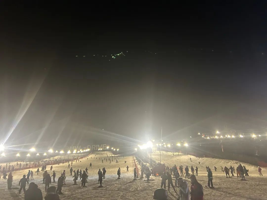雪友们在军都山滑雪场夜滑/记者拍摄