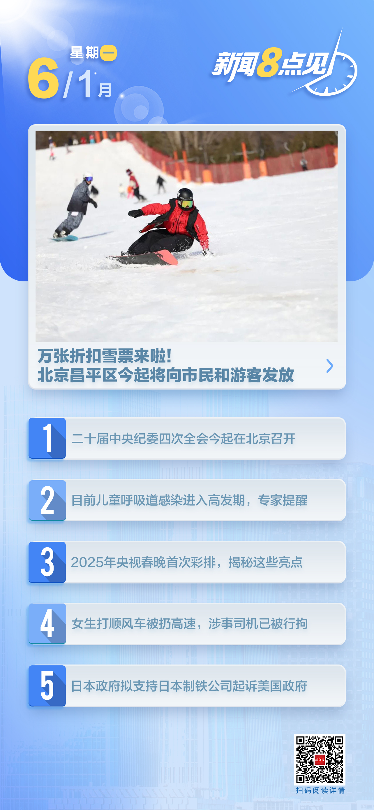 1月4日,“瓣瓣同心京津冀、欢欢喜喜过大年”采访团前往北京市昌平区军都山滑雪场进行了探访。这个雪季,滑雪场推出了国风表演、非遗展示等各项活动。从1月6日起到2月底,昌平区将向市民和游客发放超1万张折扣雪票。(北京交通广播)阅读全文>>>