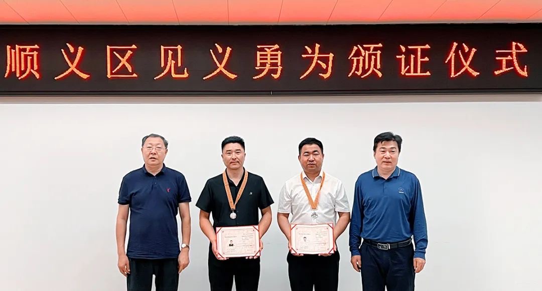 2024年9月,张中星、陈潮获颁《北京市见义勇为人员证书》。受访者供图