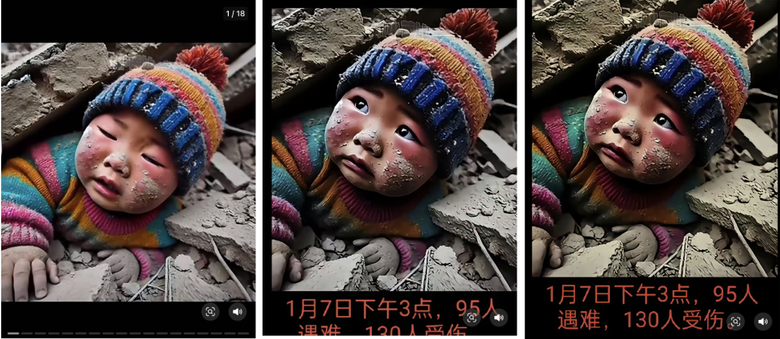 被压在地震废墟下的小男孩,居然是AI生成的图片。1月7日,西藏日喀则市定日县发生6.8级地震,灾情牵动人心,许多网友在社交平台上为灾民祈福。但与此同时,一些疑似虚假信息,比如AI生成的图片,正在造成广泛误导。