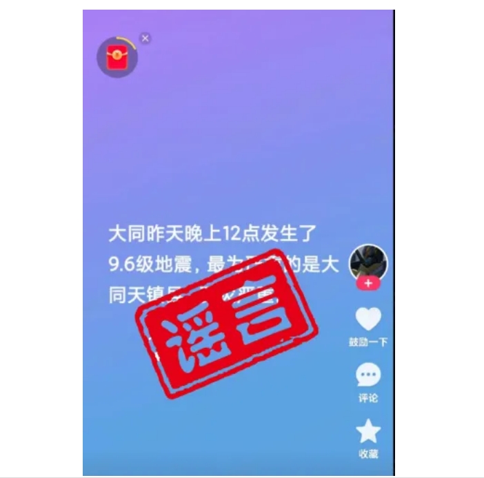 2025 年 1 月 7 日 16 时 33 分,某短视频平台一个网名为 “刘雷洋”的账号悄然发布了一条令人震惊的消息:“大同昨天晚上 12 点发生了 9.6 级地震,最为严重的是大同天镇县,受灾严重。” 此消息一经发出,迅速在网络上引发关注与传播,不少网友被这突如其来的 “灾难通报” 弄得人心惶惶。