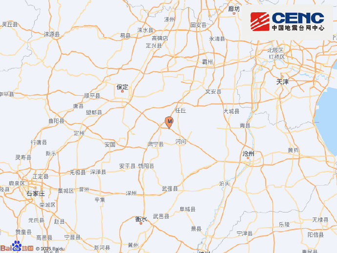 河北沧州市任丘市发生3.4级地震 震源深度13千米
