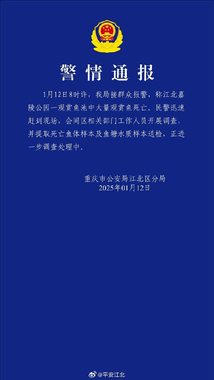 重庆一公园大量观赏鱼死亡,警方通报