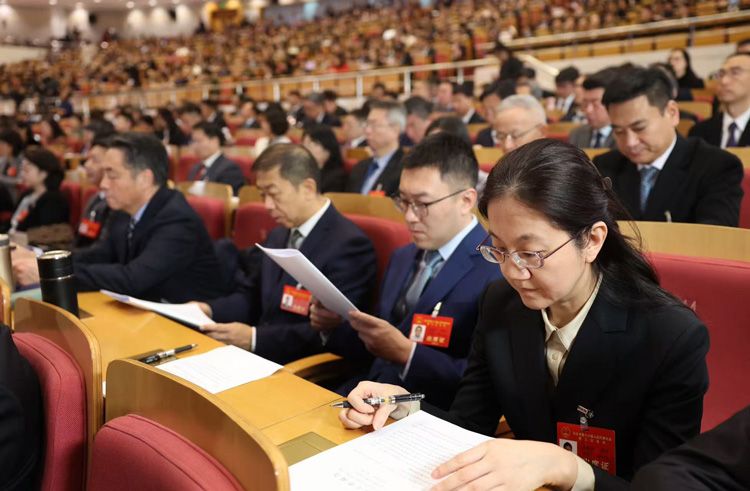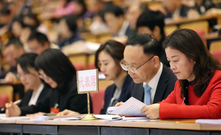 代表们认真听取政府工作报告。