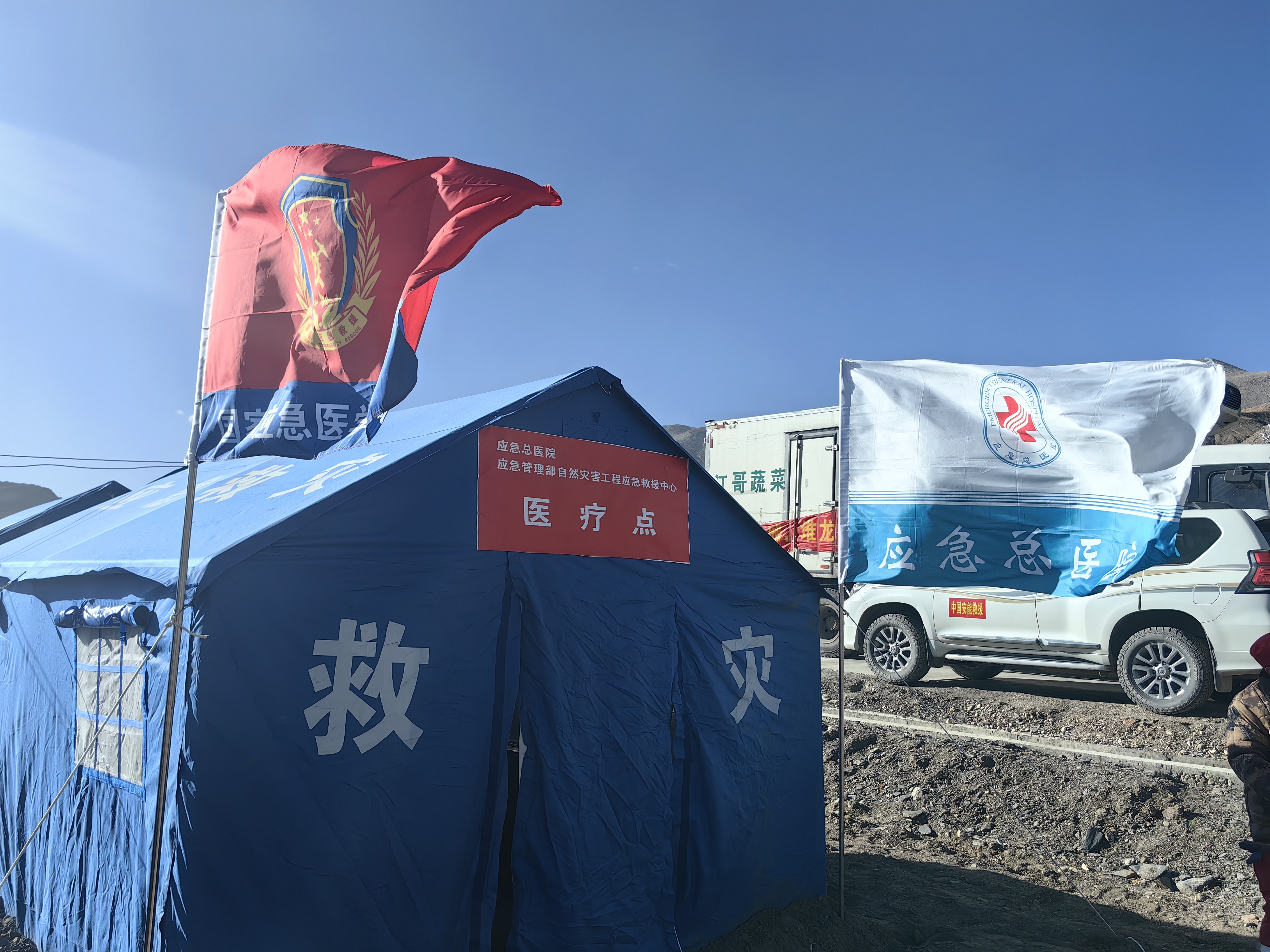 应急总医院国家应急医学救援队在嘎旦村设置的医疗点。图源:应急总医院