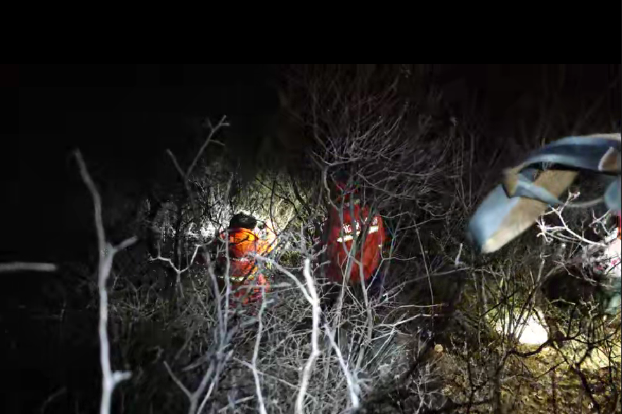 18时56分,消防救援人员抵达樱桃沟村,并与民警、向导会合。在了解被困人员的具体位置后,救援队伍于18时57分开始登山搜救行动。“起初,我们还能沿着村里的道路往上走,但很快就不得不自行动手开辟山路。一路上荆棘密布,基本上只能低头弯腰前进,这给救援行动带来了一定的挑战。”龙泉消防救援站副站长王斌亮回忆说,天气太冷,救援人员也担心被困人员在外受冻时间过长有危险,所以一路尽快上山,不敢停歇。