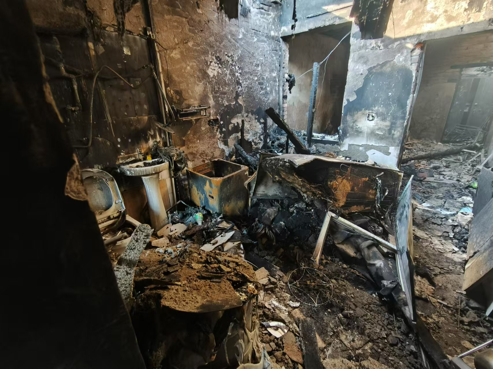 王女士家被烧得一片狼藉。 图源:门头沟区消防救援支队