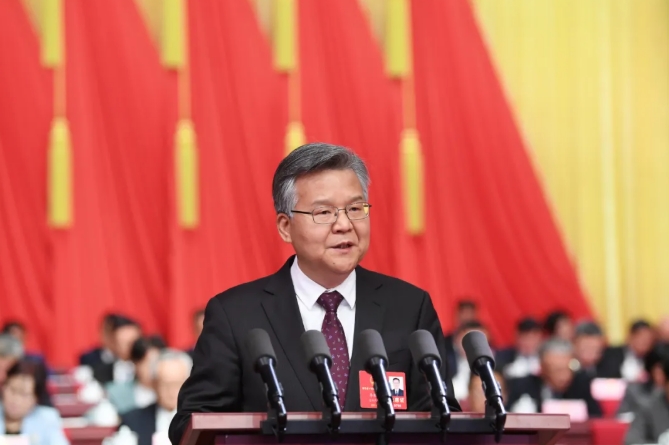 1月16日,李殿勋作政府工作报告。(来源:湖北日报)