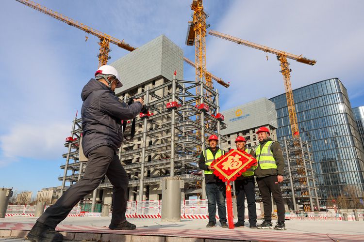 工人们将带着项目团队的祝福回家过年。项目经理冯有忠表示,该项目2月7日全面复工,预计今年内所有单体建筑主体结构封顶,团队将保质保量完成任务,为首都建设添砖加瓦 。