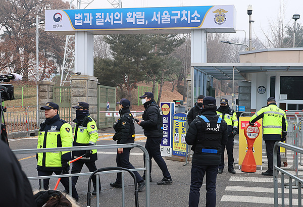 △当地时间1月20日,警方在首尔拘留所前执勤。