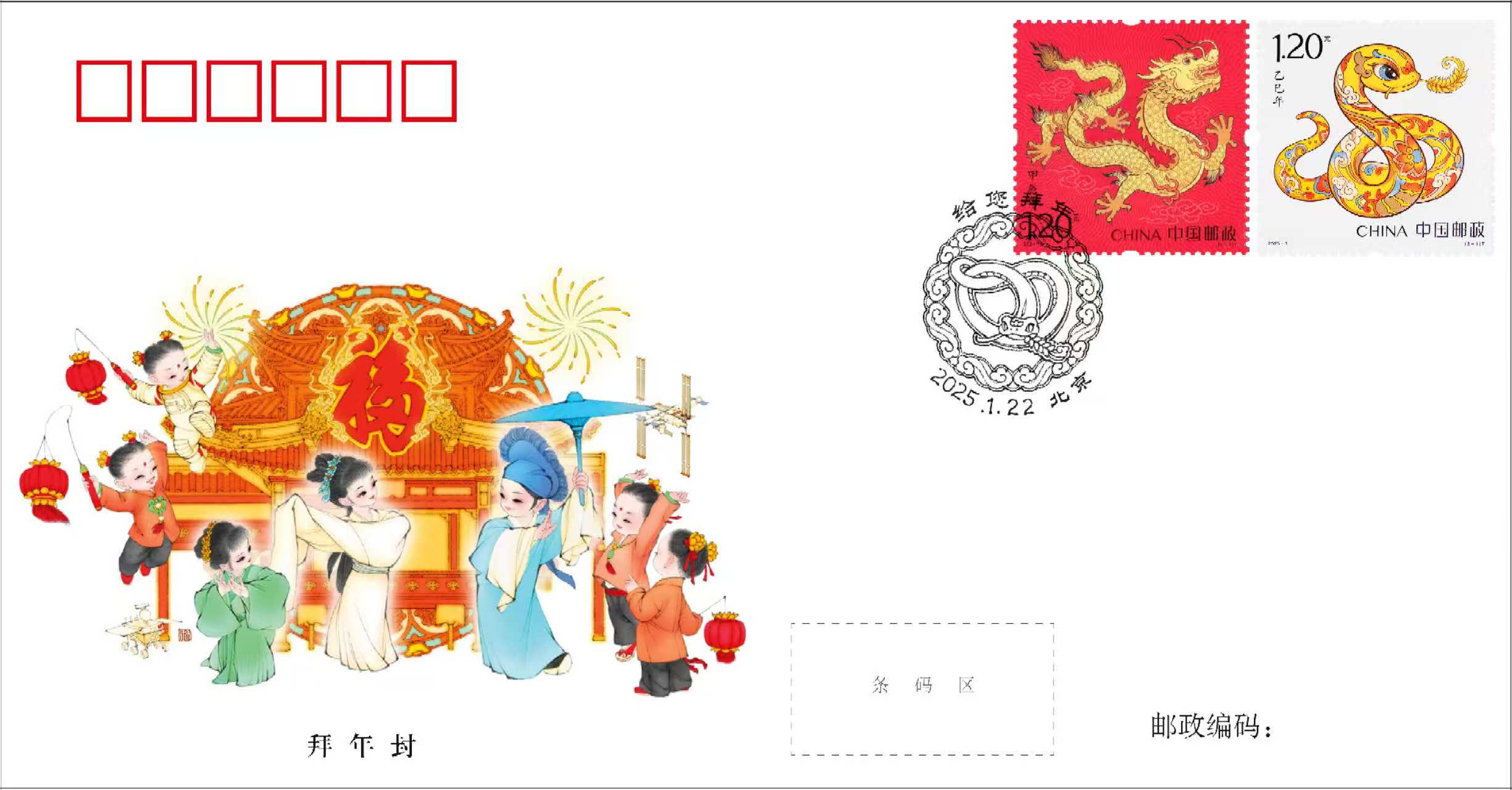 拜年封是中国集邮有限公司从1993年起推出的经典系列邮品,2025《乙巳年》拜年封是第32枚拜年封。30余年来,拜年封的主题与时俱进,规格、形式和编号传统一脉相承地延续下来。