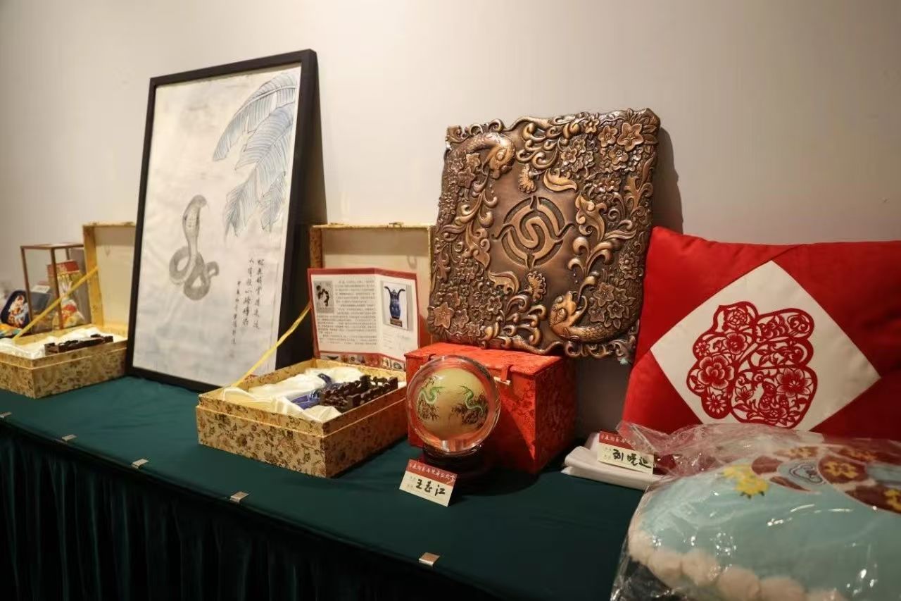 现场展示的以蛇为主题的文艺作品。东城区图书馆供图
