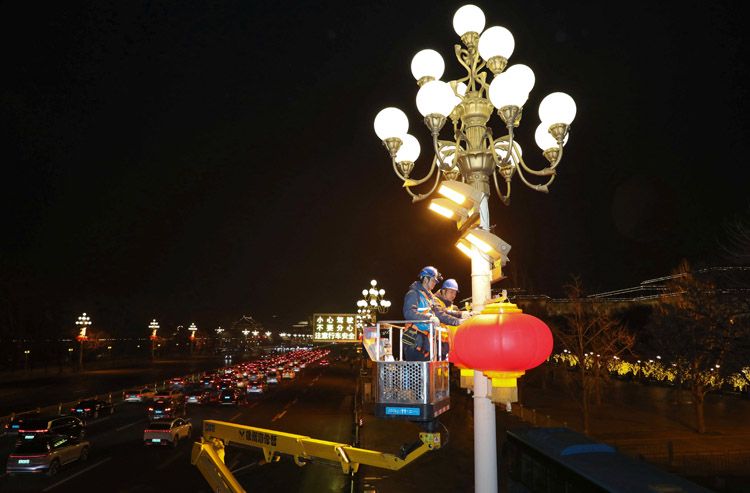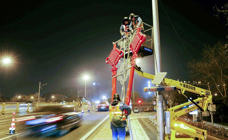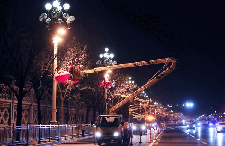 经过前期的“体检”、安装、调试和试运行,长安街华灯上的242套大红灯笼、东西延长线单弧路灯上的862套“中国结”和北海大桥地区的100套串灯于小年夜正式进入“春节模式”,长安街“披红”迎新春。