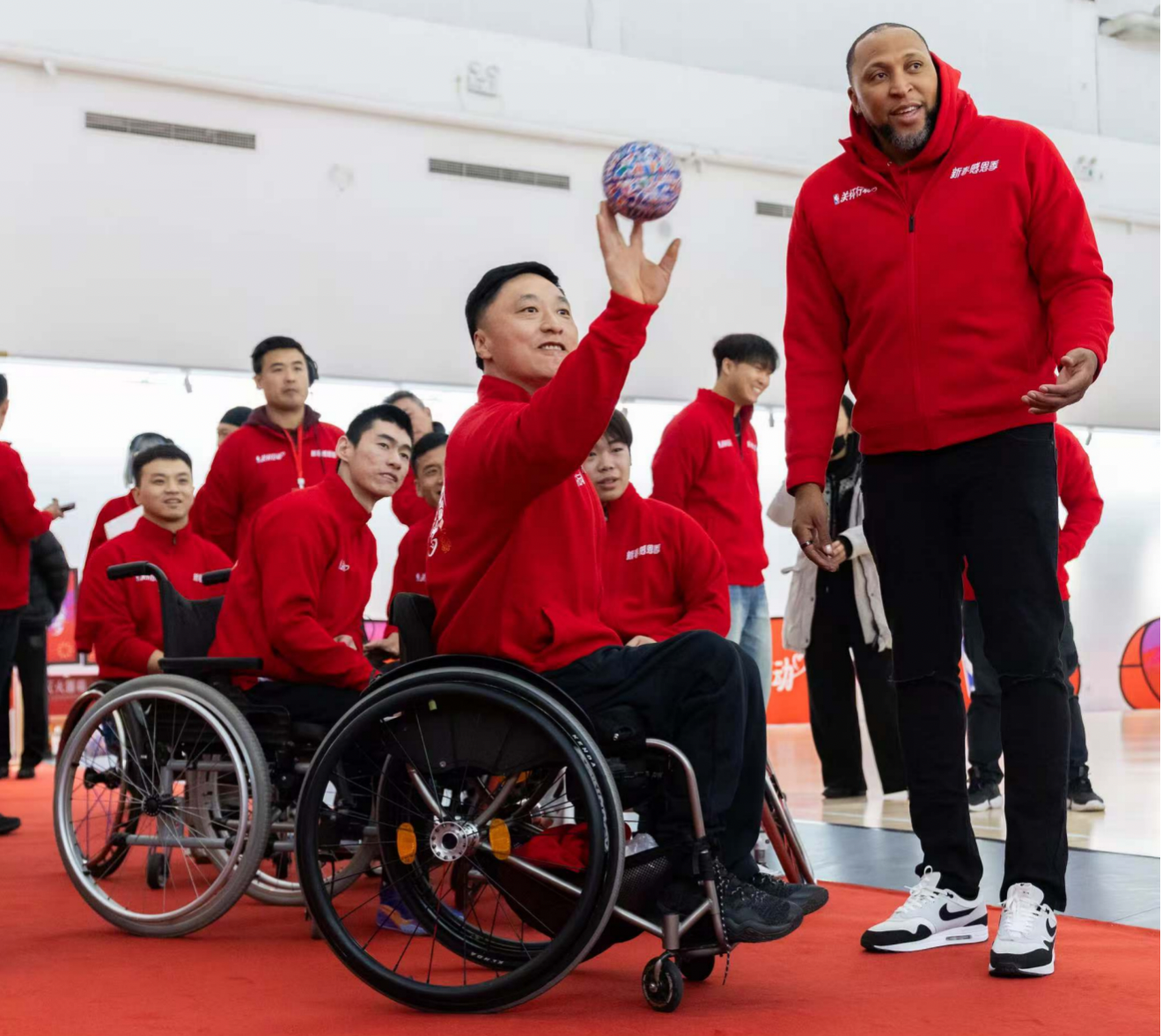 随后,马里昂还参加了技巧赛、投篮赛和积分挑战赛等互动环节,与北京轮椅篮球队运动员及球迷们同台竞技。马里昂表示篮球是一项连接世界的运动,他也希望未来能通过篮球搭建更多的交流桥梁,让更多人感受篮球的魅力。