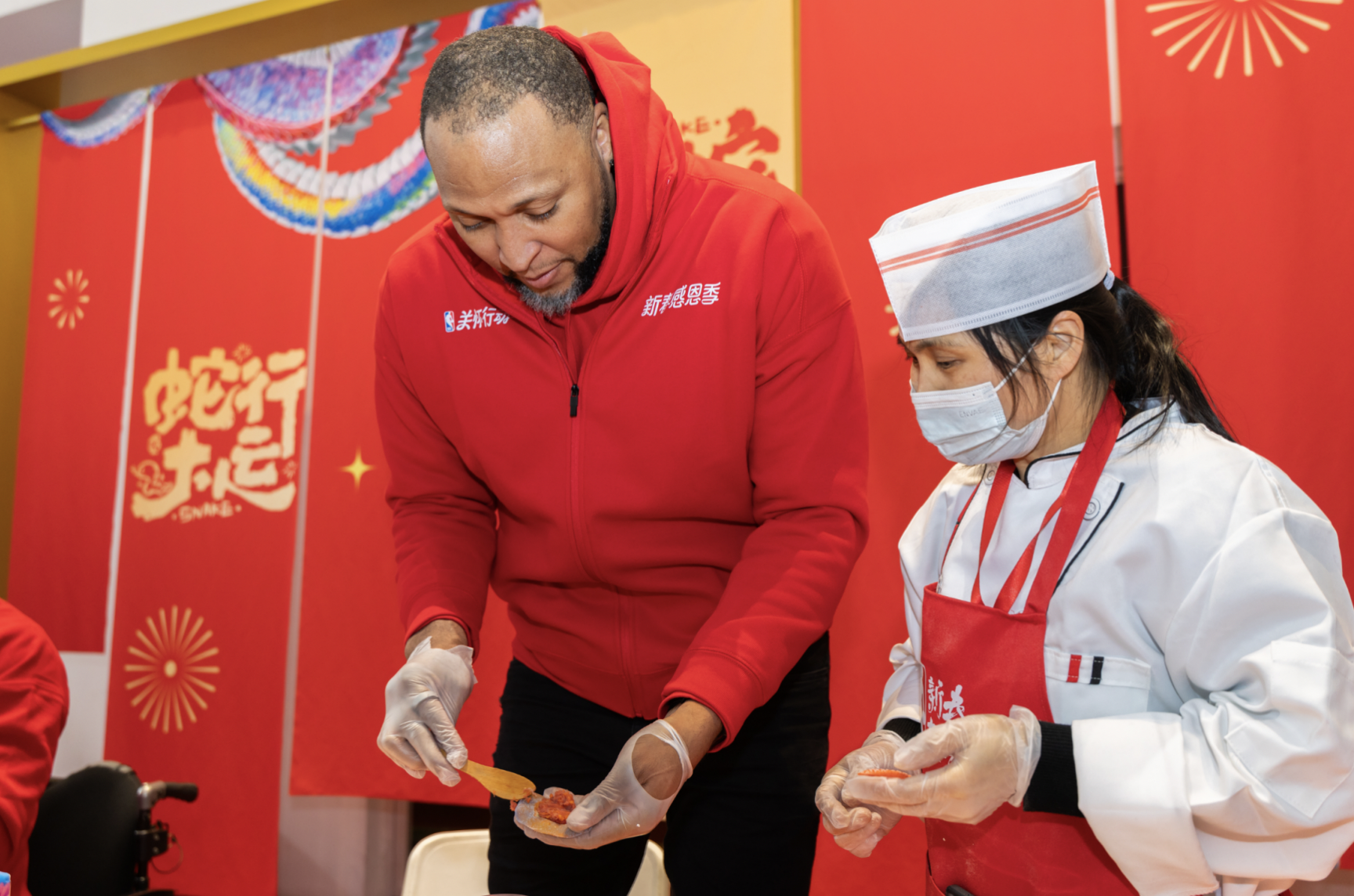 NBA关怀行动·新春感恩季开启,马里昂体验包饺子、写福字