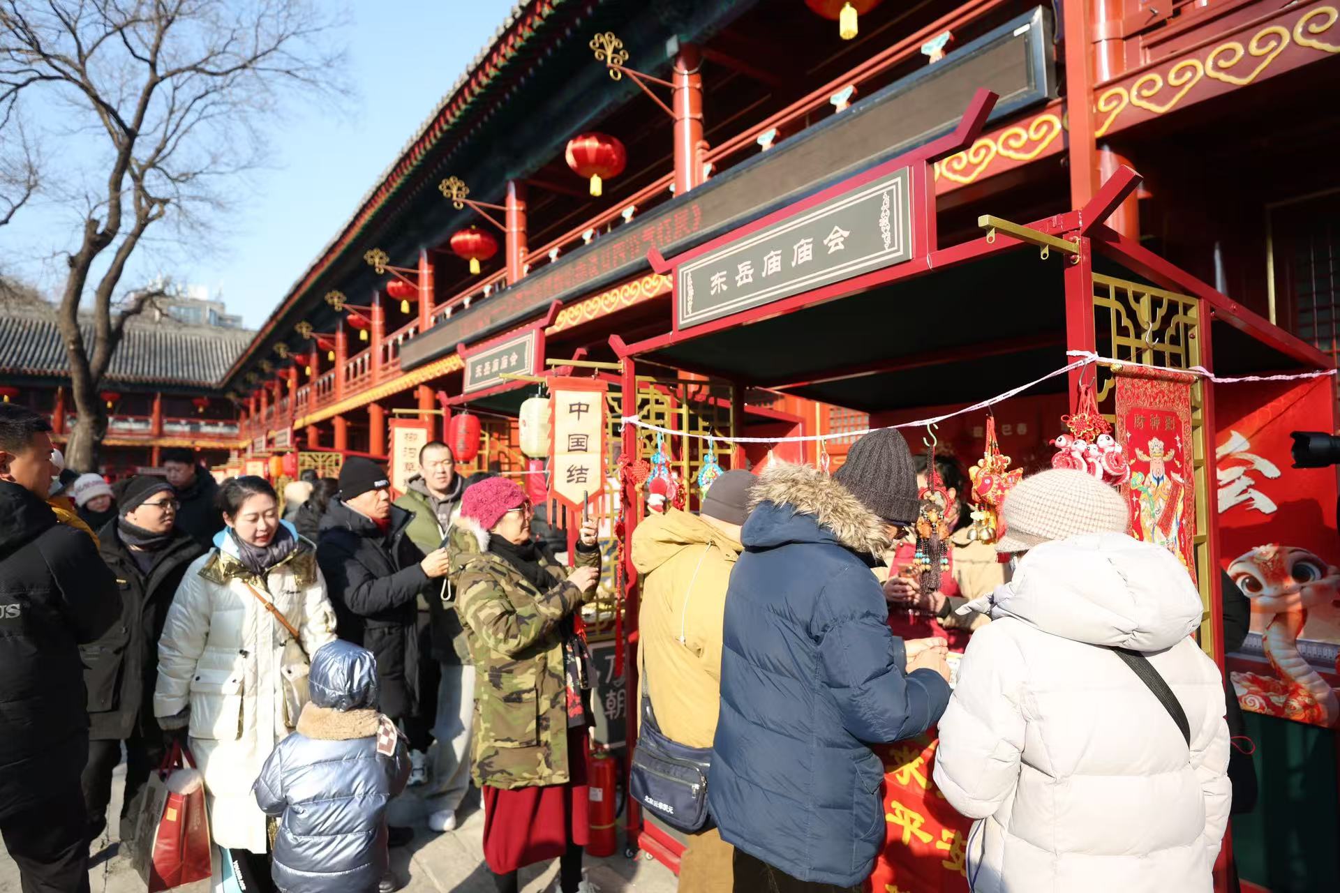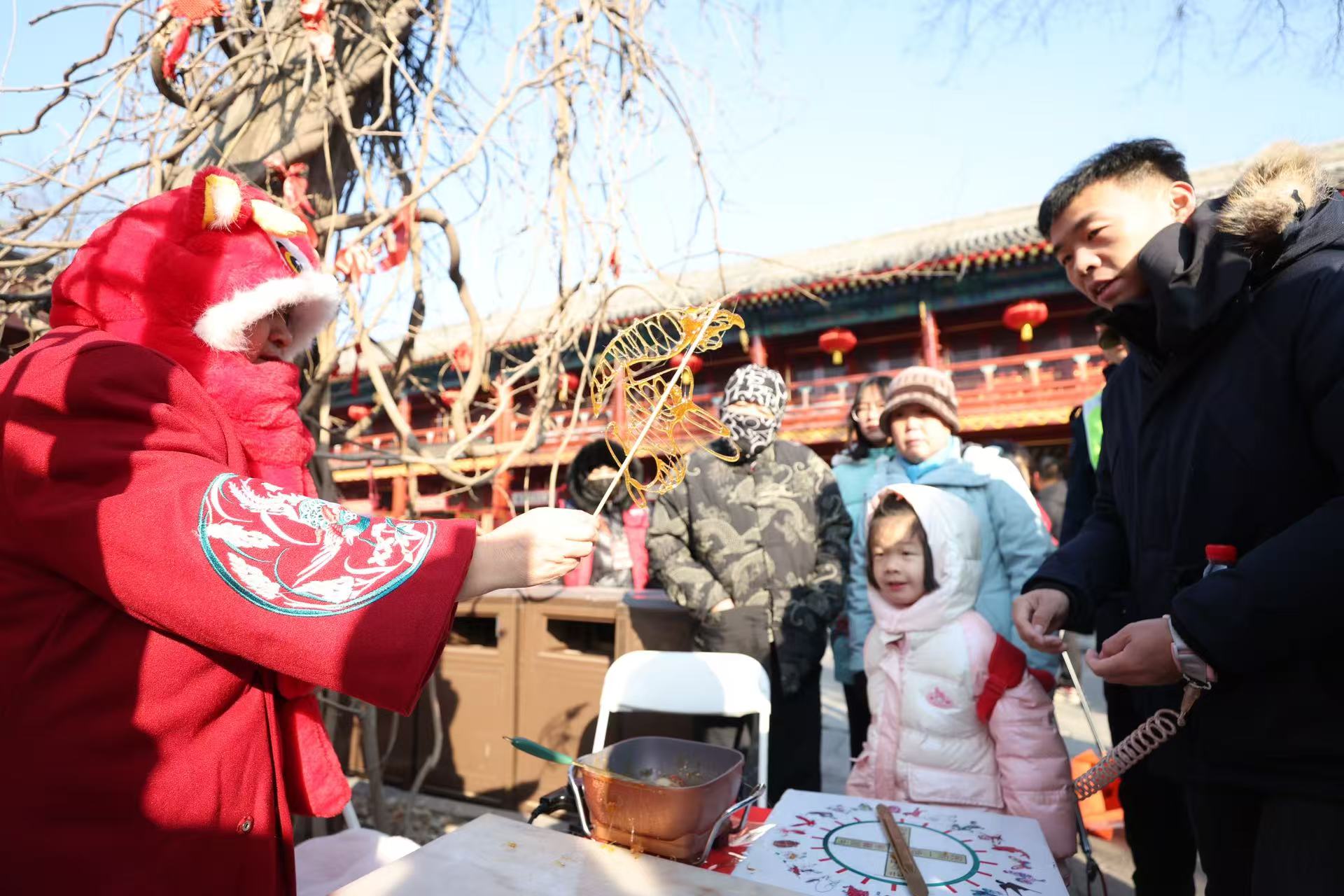 1月29日(大年初一)一大早,北京朝阳区东岳庙庙会开启,来自全国各地的7支舞狮队,上演南北舞狮“争霸”赛。当天,第24届北京民俗文化节暨第27届北京东岳庙庙会正式与市民、游客见面,活动从正月初一一直持续到正月初五,除了有好玩的市集、好看的展览,还有众多老字号美食。