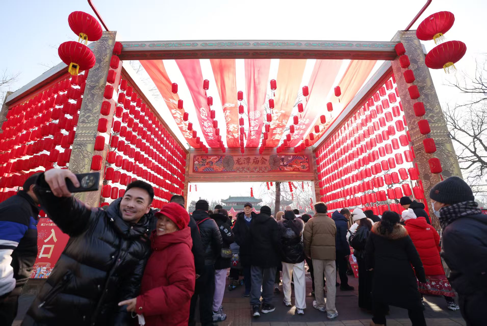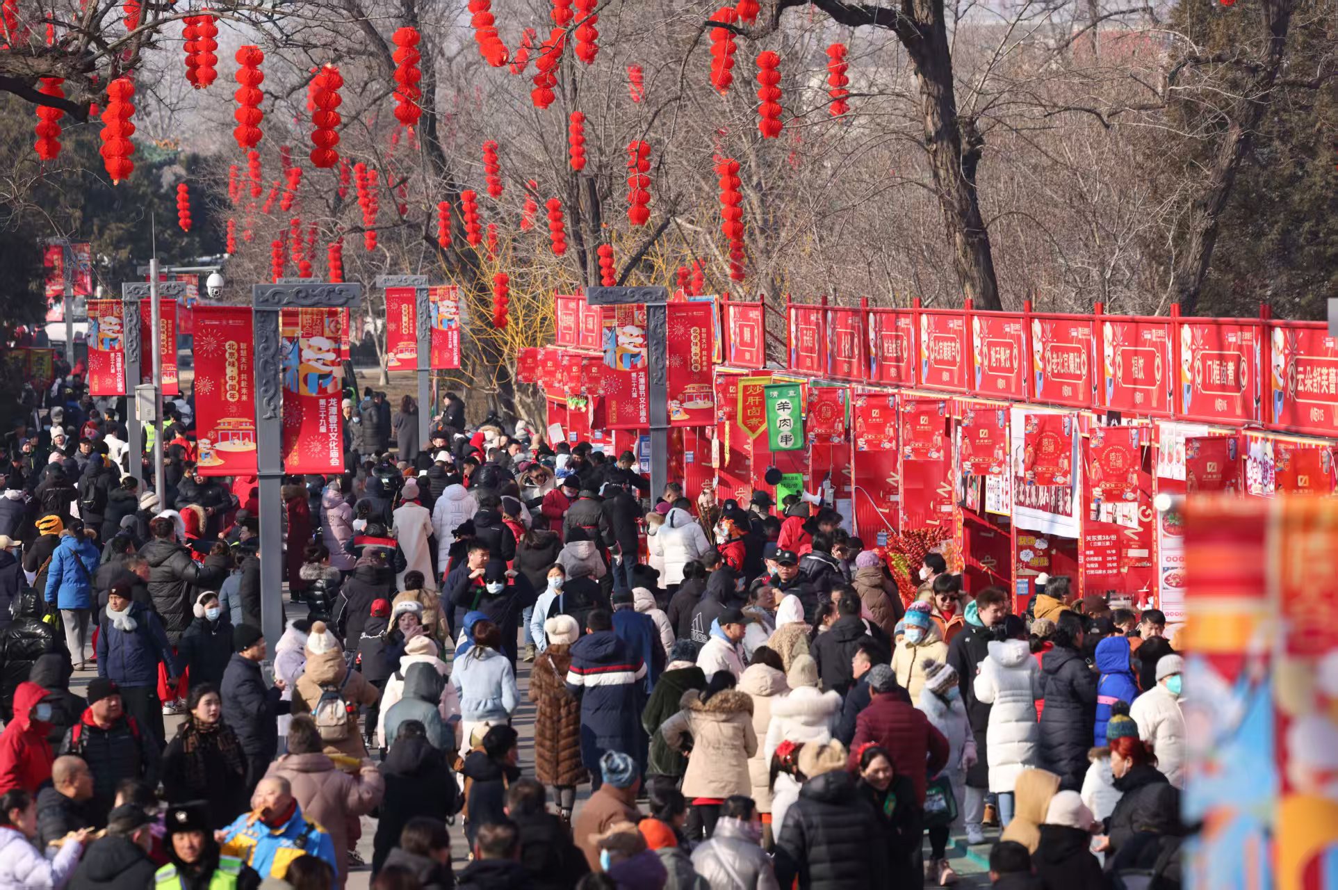 1月29日,第三十九届龙潭春节文化庙会拉开帷幕。本届庙会以“都城万象焕新颜,京华春意乐大年”为主题,通过六大板块内容——古都腔调、市井喧腾、都会烟火、京华风物、京彩冰雪、千树结彩,展现了首都古韵与现代北京、春节民俗传统文化与潮流文化的有机结合。