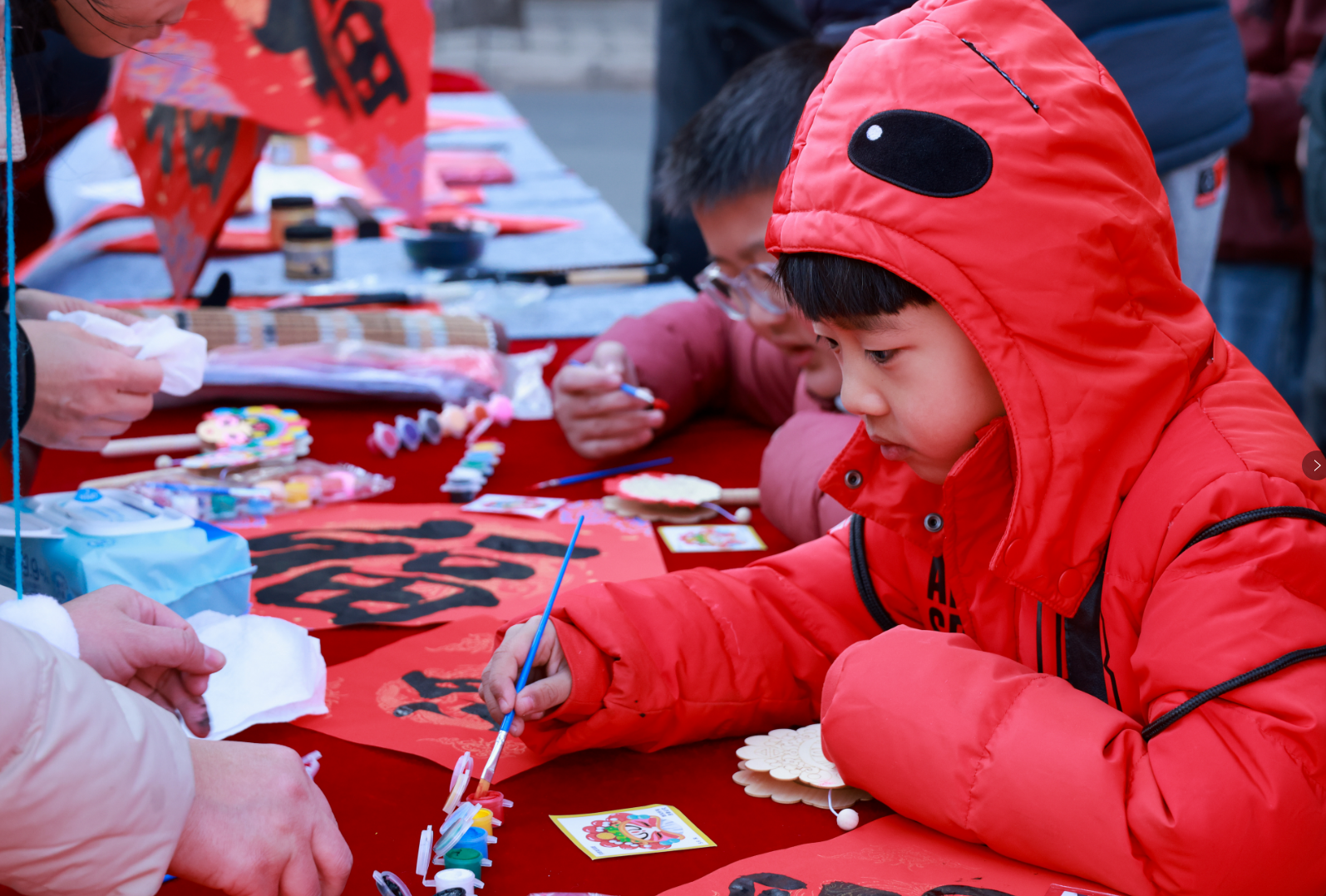 小朋友在紫竹院公园写福字、绘制京剧脸谱。北京动物园供图