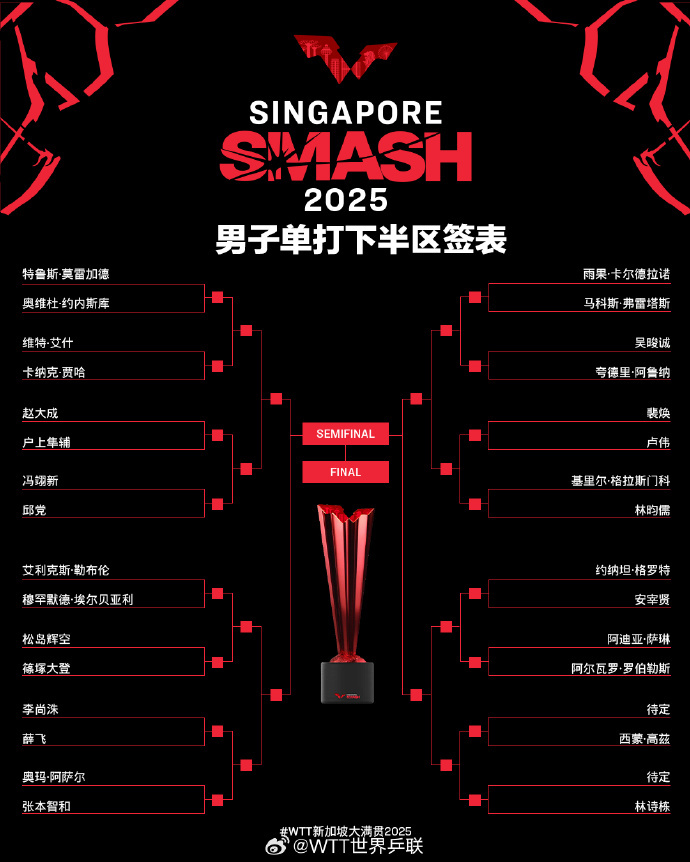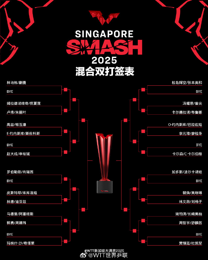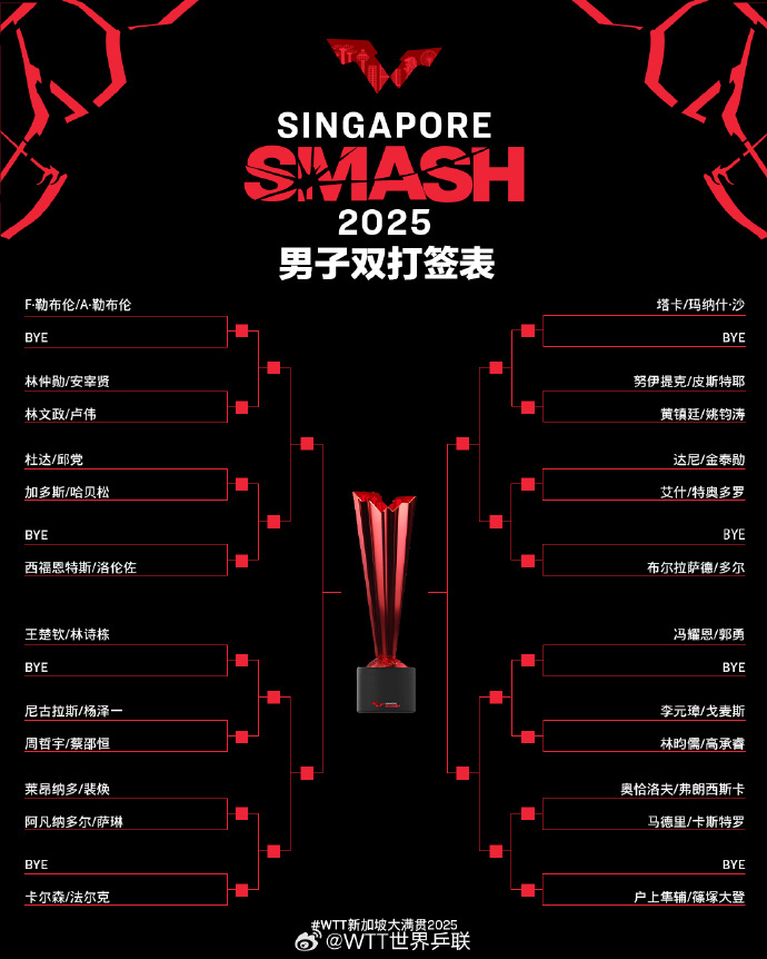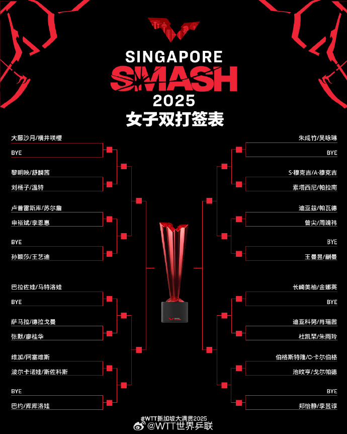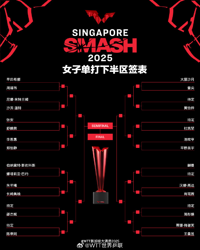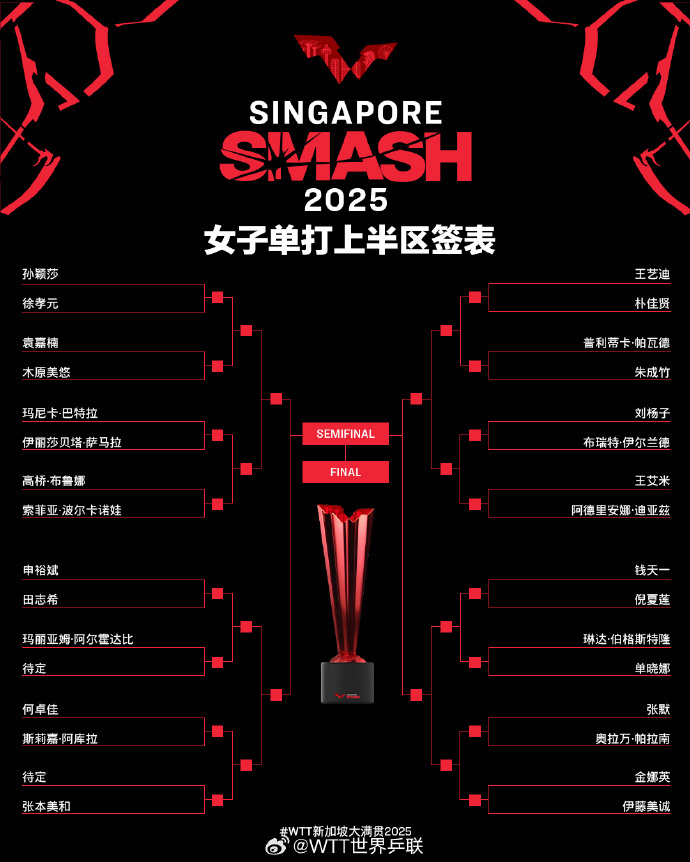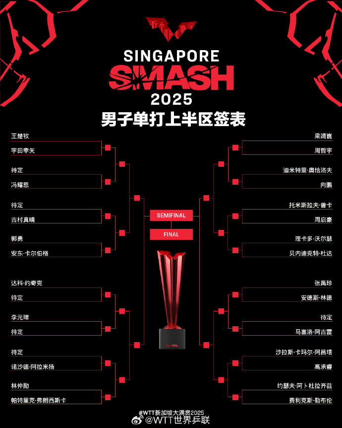 据央视新闻消息,北京时间1月31日,2025WTT新加坡大满贯抽签仪式举行,抽签结果如下: