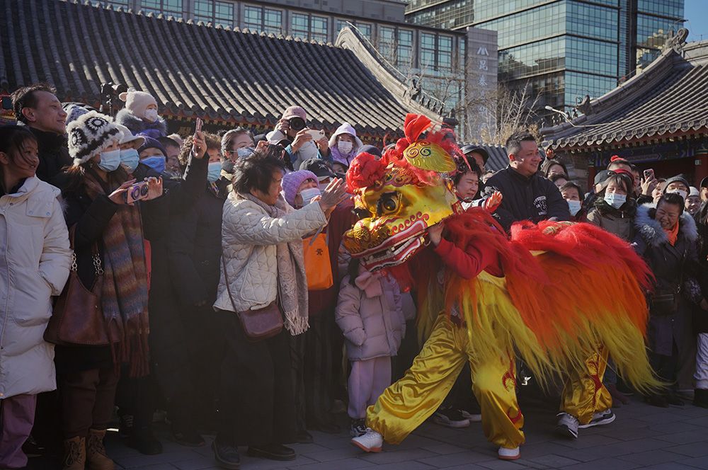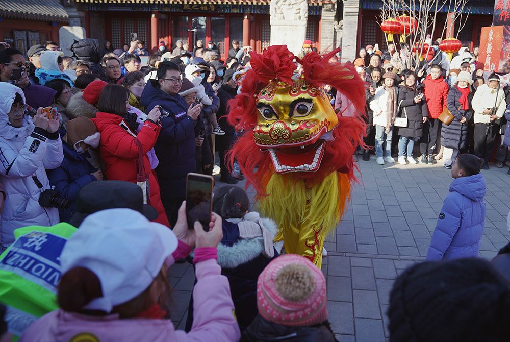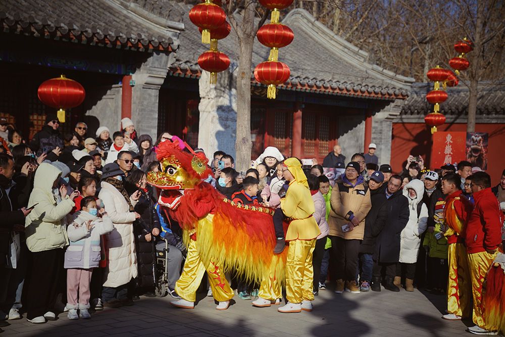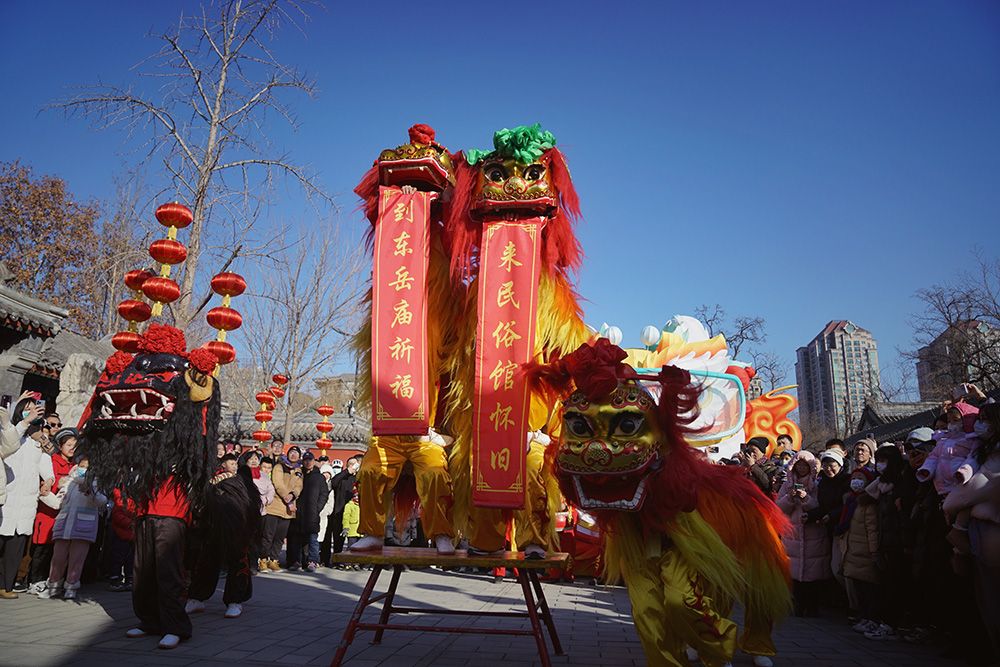 第24届北京民俗文化节暨第27届北京东岳庙庙会,从正月初一一直持续到正月初五,除了有好玩的市集、好看的展览、好吃的老字号美食,更有“焕新朝阳,千狮贺岁”精彩舞狮展演,南狮北狮七大非遗舞狮团队的精彩表演,再现中华舞狮的“威武风姿”。