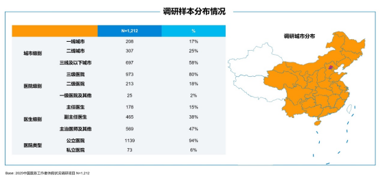 这份调查报告是医问通研究员高瑾通过在线问卷调查的方式,对全国29个省、市、自治区的医务工作者的休假状况进行调研,收集到来自各级各类医疗机构的有效样本 1212份。调研群体全面覆盖各地三级、二级、一级医院及公立、民营医院,涵盖了医生、护士、医技人员等不同岗位、不同科室的医务工作者。
