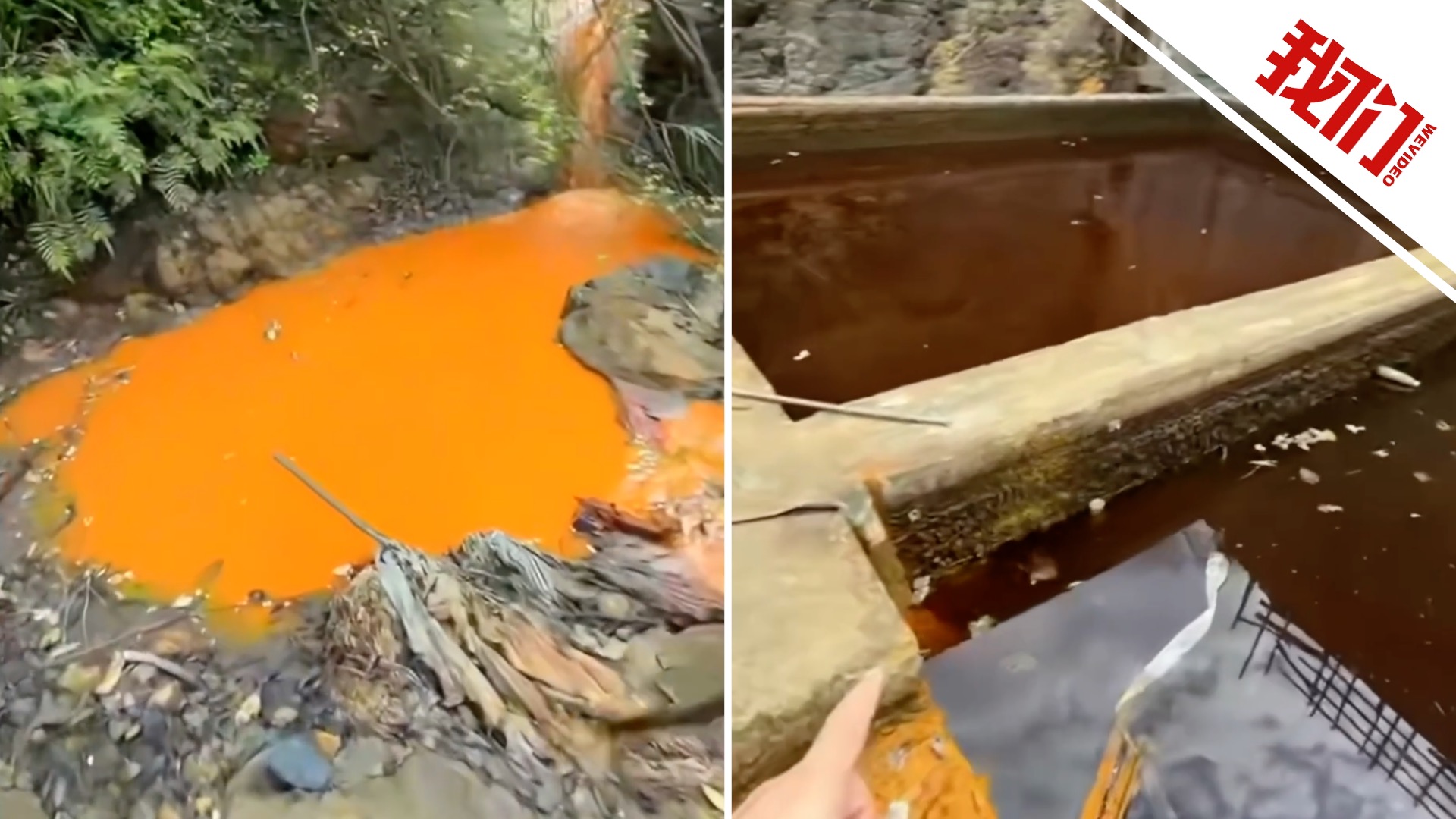 重庆一小溪呈橙色鱼虾绝迹 官方:系废弃煤矿废水池外渗 正处理